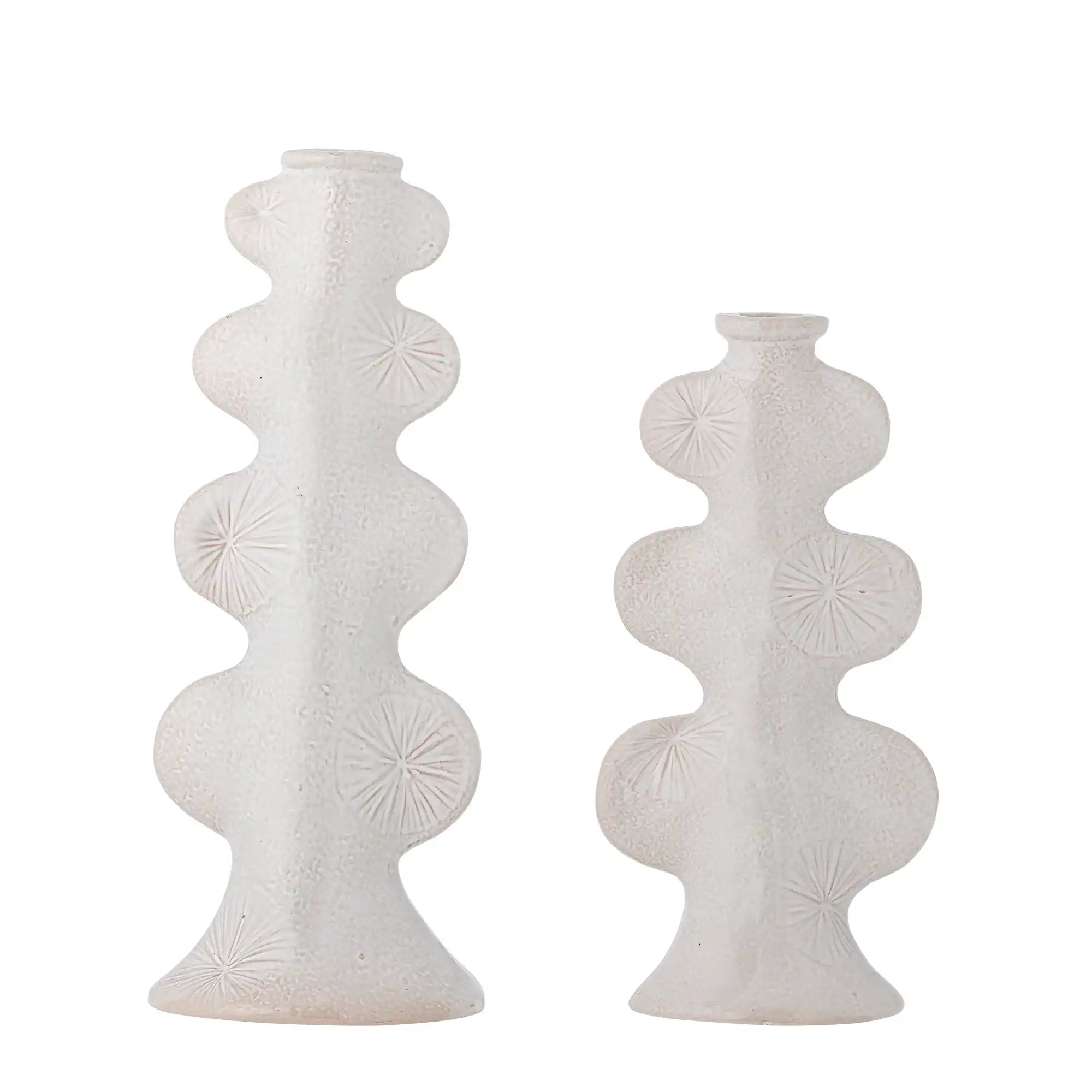 Détails & matériau : Les bougeoirs sont fabriqués en grès blanc solide et finis avec un émaillage unique, ce qui rend chaque pièce légèrement différente. Grâce à leurs dimensions de 10,5 x 31 x 12,5 cm, ils attirent le regard sans dominer l’espace. La belle combinaison de matériaux de qualité et de détails raffinés les rend intemporels et faciles à associer.