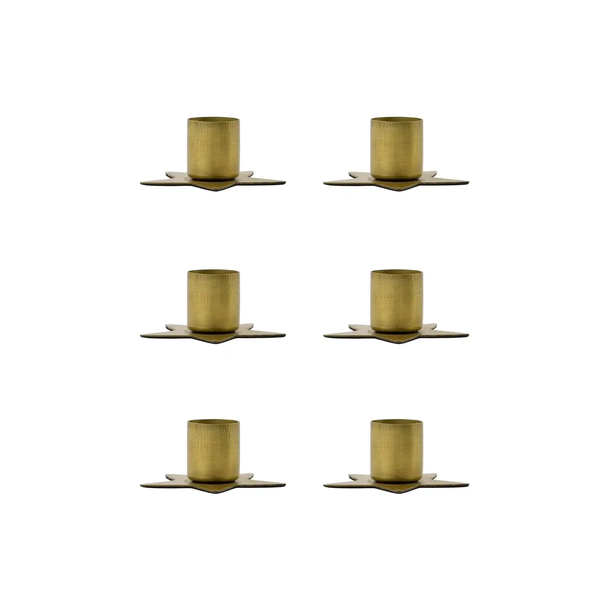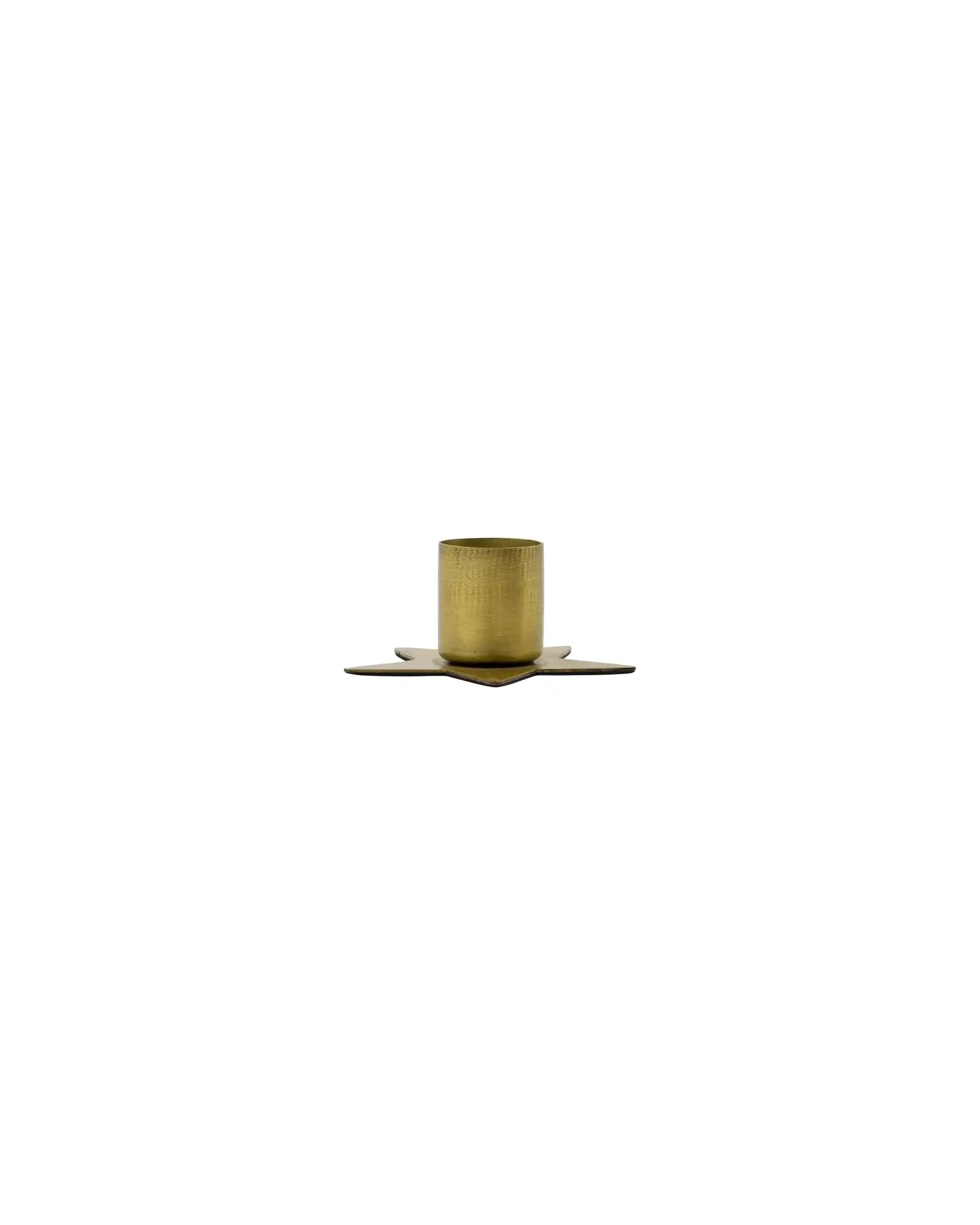 Fabriqué en métal avec une finition cuivre antique et doté d’un pied en forme d’étoile à cinq branches façonné à la main. Le bougeoir mesure 3 cm de haut et a un diamètre de 6 cm. Sa forme raffinée et sa couleur chaleureuse en font un détail élégant en toute saison.