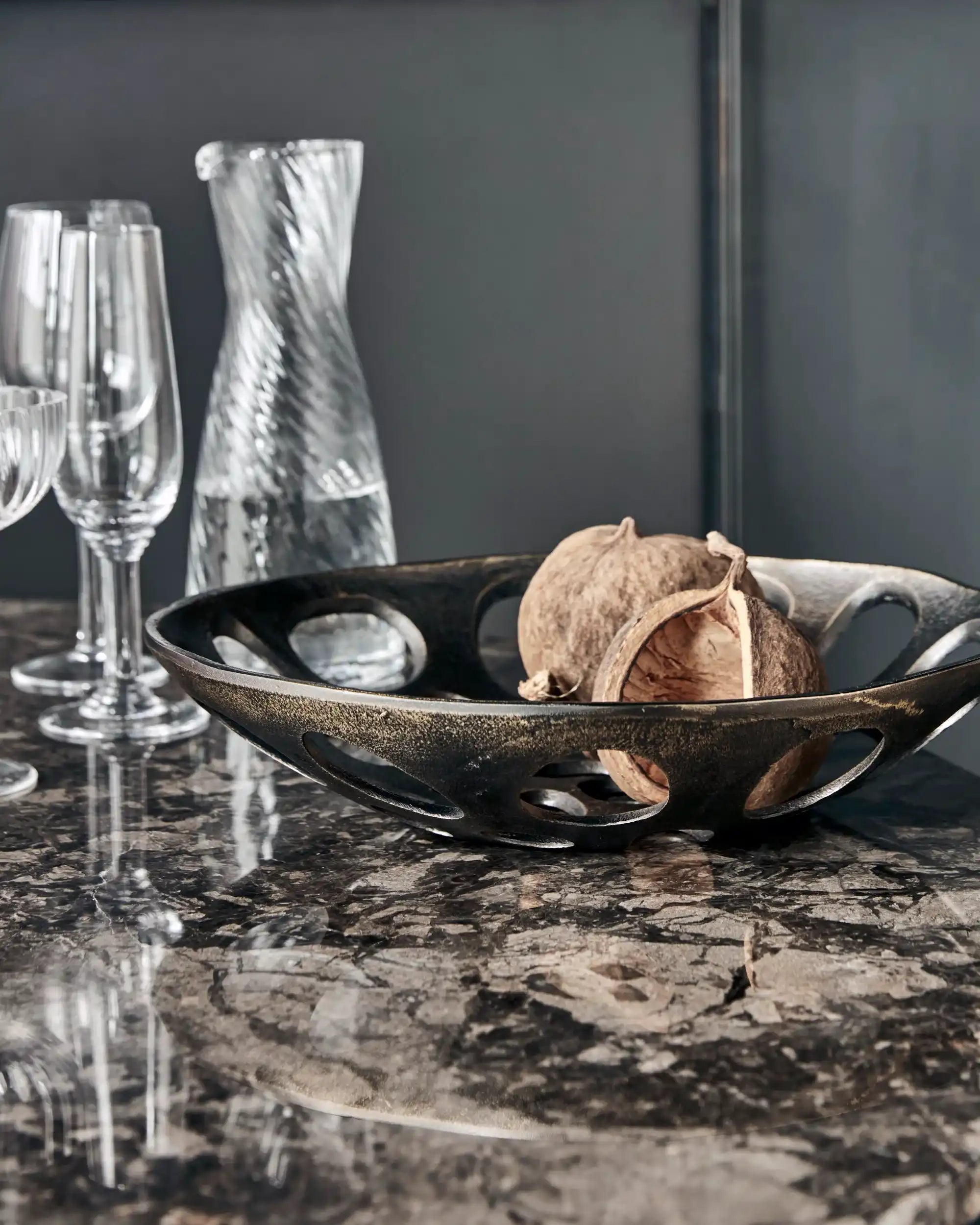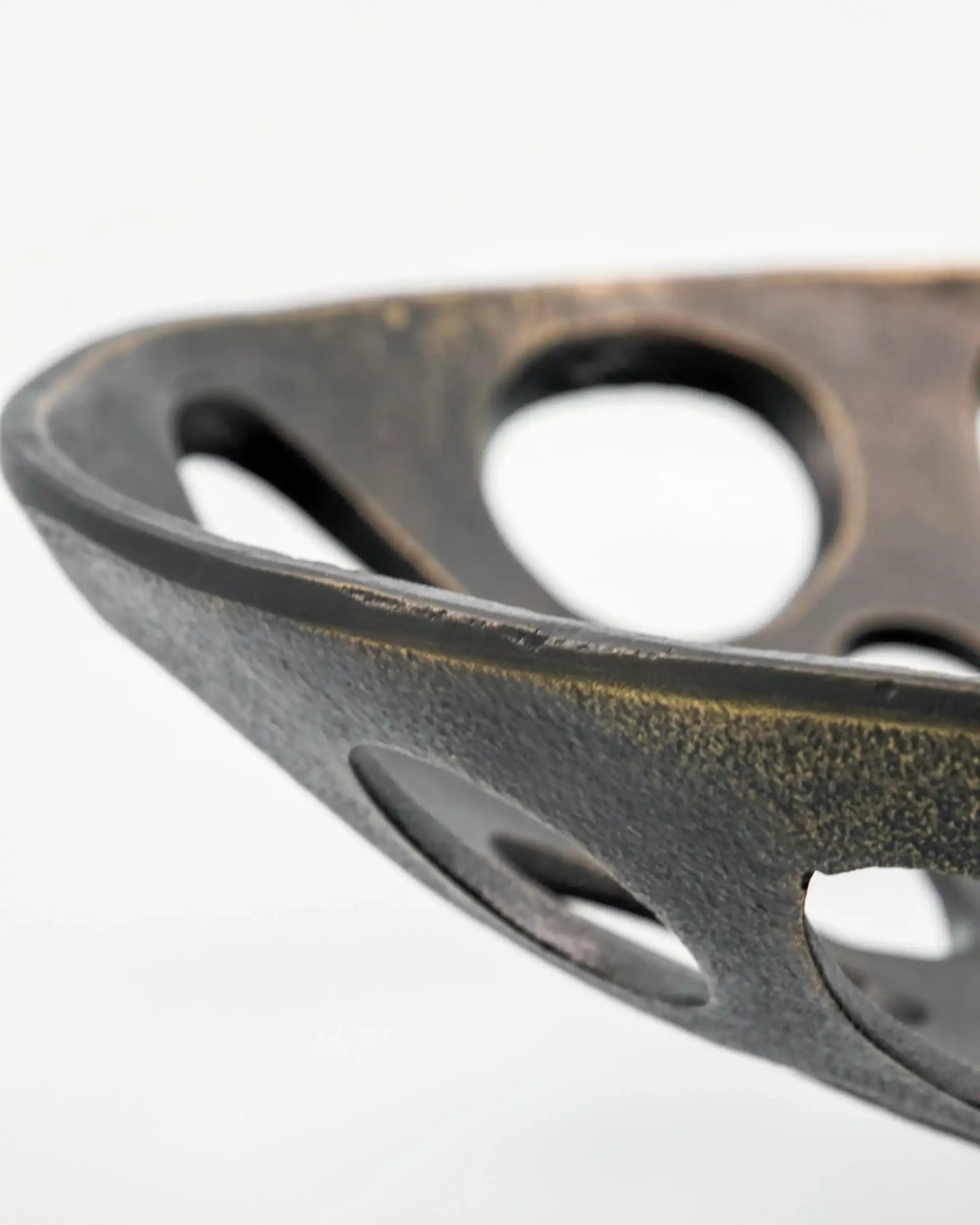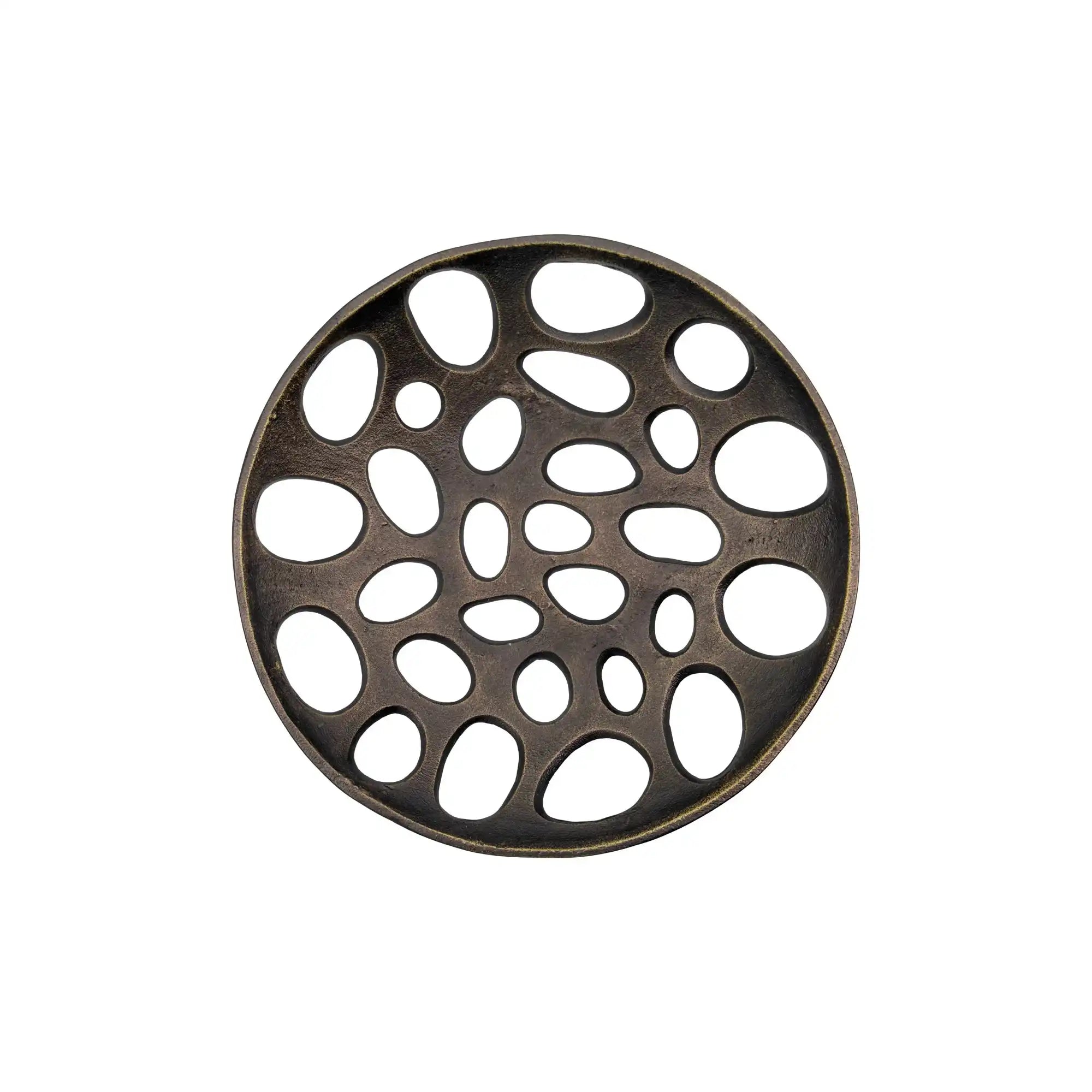 Cette pièce décorative faite à la main est fabriquée en aluminium robuste et finie dans une profonde teinte cuivre antique. Avec une hauteur de 7 cm et un diamètre généreux de 35 cm, son format attire l'attention sans dominer la pièce.
