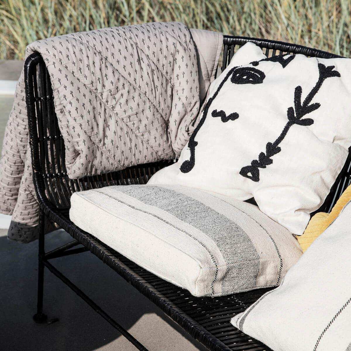 Ces jolies housses de coussin de House Doctor s'appellent Morocco et s'associent parfaitement avec des coussins d'autres formes et couleurs. Le coussin Morocco présente une belle couleur beige avec différentes rayures noires. L'association du beige et des rayures noires donne à la housse de coussin un look spécial et bohème. Le coussin Marocco est une housse carrée mesurant 55 cm de long, 55 cm de large et 6 cm de haut. La housse de coussin est fabriquée dans un beau tissu 100% coton de qualité.