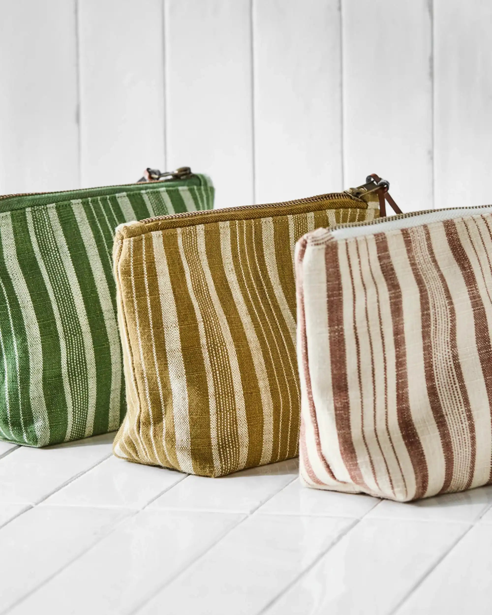 La trousse est fabriquée en coton certifié Oeko-Tex et offre une sensation à la fois solide et souple. La teinte vert olive foncé est intemporelle et se marie facilement avec d'autres accessoires. Avec une longueur de 22 cm, une largeur de 7 cm et une hauteur de 14 cm, elle offre suffisamment d'espace sans être encombrante—parfaite pour un usage quotidien.