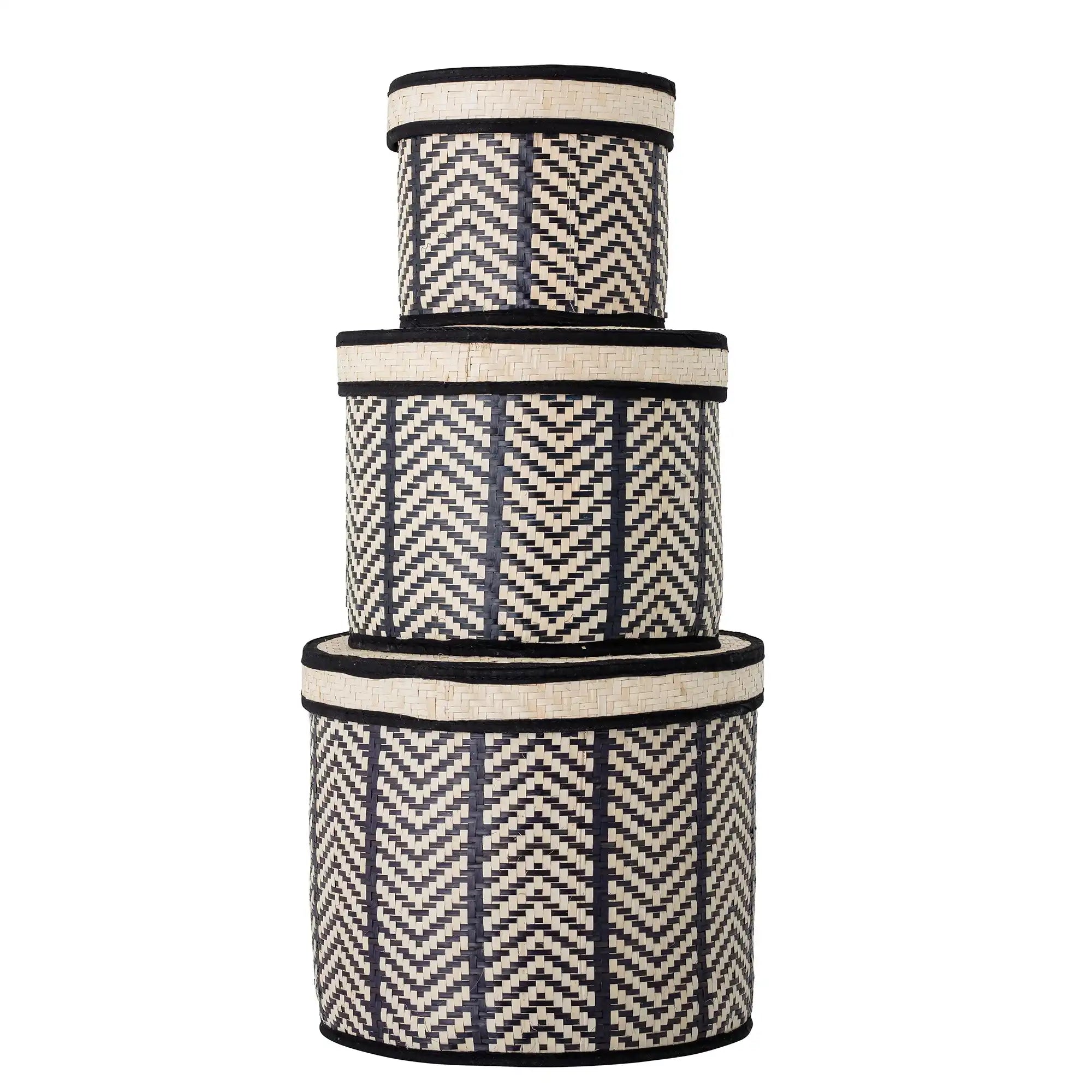 Détails & matériau : L’ensemble se compose de deux paniers tressés à la main en feuille de palmier robuste et en jonc de mer, où les couleurs naturelles sont magnifiquement intégrées dans le motif tressé. Grâce aux différents formats, ils sont étonnamment polyvalents : parfaits pour ranger des plaids, des magazines ou de petits accessoires de façon ordonnée. Avec un diamètre généreux de 30 cm et une hauteur de 25 cm, ils offrent beaucoup d’espace, tandis que le couvercle assure un aspect bien rangé.