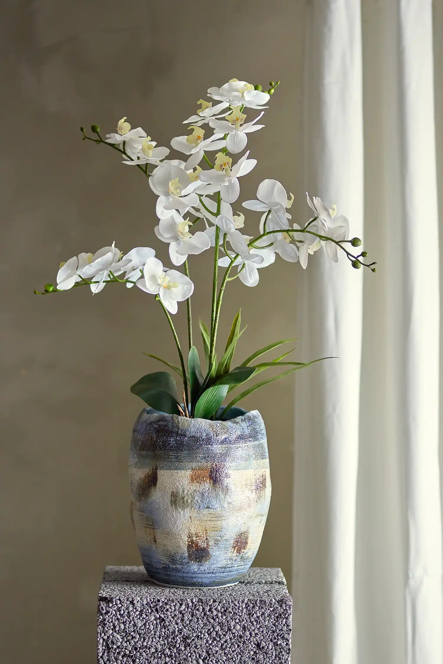 Astuce déco : Place cette orchidée sur un buffet, une table à manger ou dans un coin lumineux pour une touche fraîche et moderne – sans te soucier de l’arrosage. Avec cette plante spectaculaire sans entretien, tu profites toujours d’une floraison éclatante à la maison.