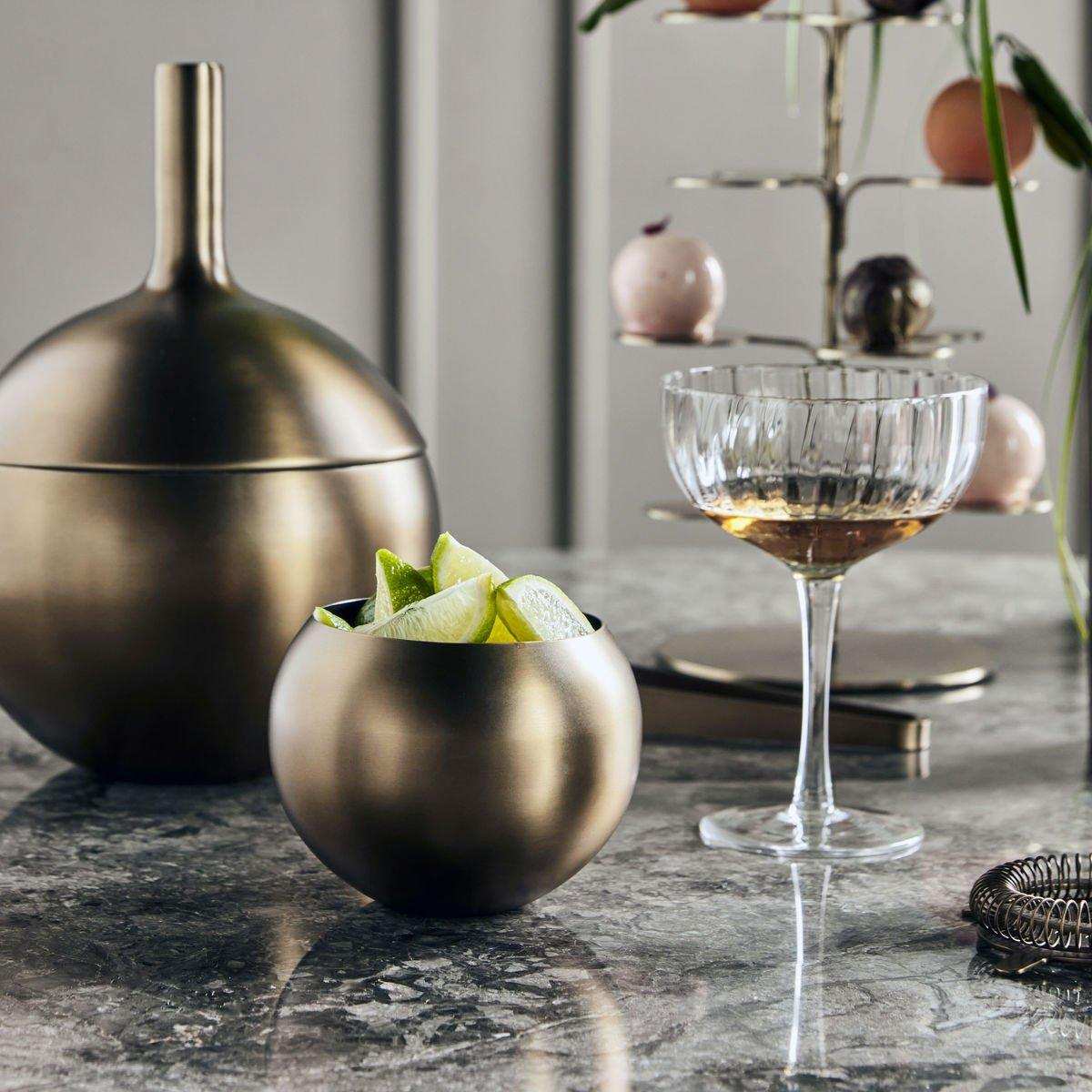 Le House Doctor Schaal Baar Antiek Messing est le choix idéal pour ajouter une touche raffinée à ta cuisine ou ton bar. Ce bol compact, d'un diamètre de 12 cm et d'une hauteur de 9 cm, est parfait pour servir des quartiers de citron vert, des feuilles de menthe ou d'autres garnitures de cocktail. Fabriqué en acier inoxydable durable et doté d'une finition en laiton antique, le bol offre un style qui s'adapte à toutes les occasions. Ajoute une note de luxe à ton bar avec ce bol polyvalent de House Doctor.
