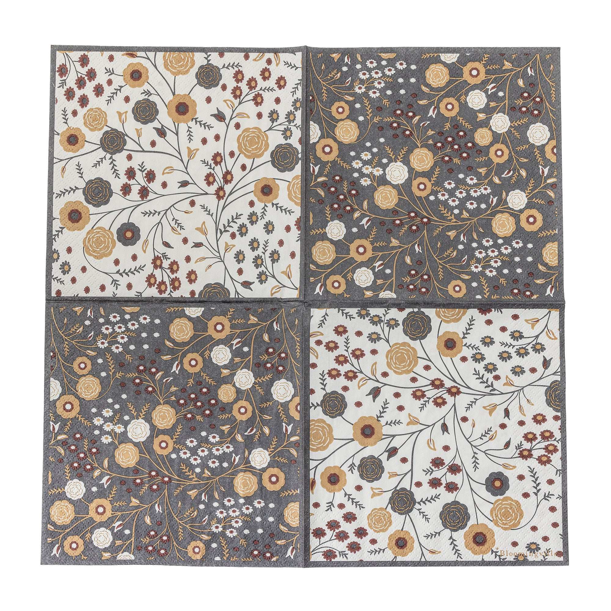 Détails & matériau : Ces serviettes sont fabriquées en papier FSC® Mix responsable et sont livrées en lot pratique de douze pièces. Grâce à leur format généreux de 33 par 33 cm, elles offrent non seulement une protection pratique, mais elles se posent aussi joliment pliées sur chaque assiette. La qualité du papier est luxueuse au toucher et l’imprimé subtil apporte de la chaleur à l’ensemble.