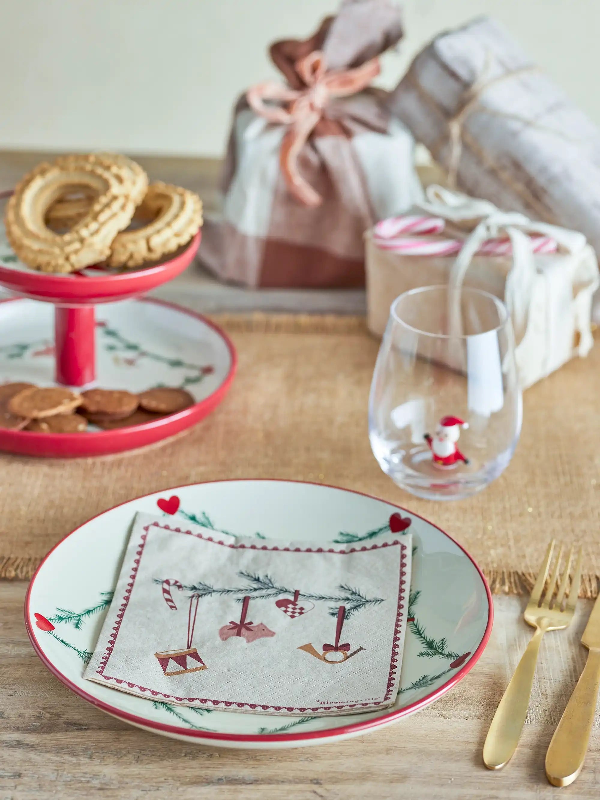 Astuce déco : Présente les serviettes dans un joli porte-serviettes à côté de tes assiettes, ou utilise-les comme touche finale joyeuse lors de l’apéritif. Tu crées ainsi facilement une ambiance de Noël scandinave et élégante chez toi.