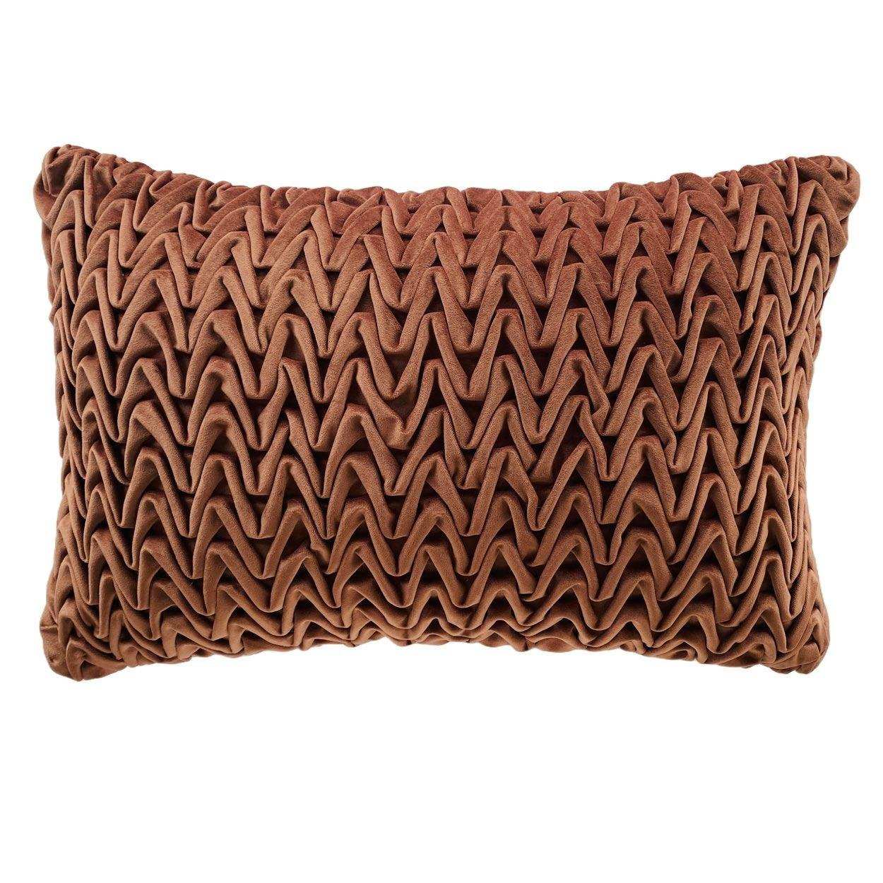 Associe ce coussin à d'autres coussins dans des tons neutres comme le beige ou le gris pour un look apaisant et élégant. Pour une ambiance chaleureuse, ajoute ce coussin à ton canapé ou à ton lit avec un plaid doux. Le cuivre chaud s'accorde parfaitement avec des accents en bois et en métal, ce qui te permet de créer facilement une atmosphère accueillante et luxueuse. Le motif en V donne au coussin une touche originale qui se marie aussi bien avec des accessoires modernes que classiques.