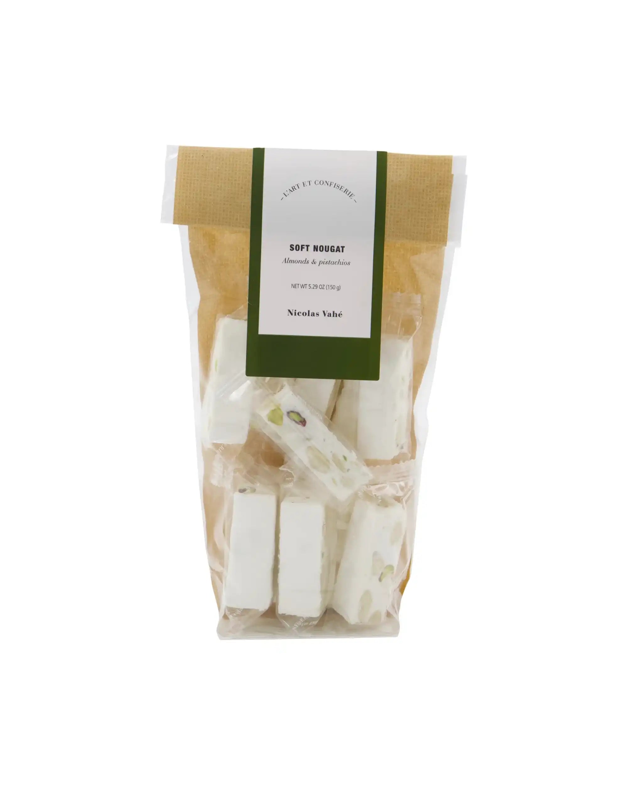 Pour les amateurs de saveurs raffinées avec une touche de luxe : le Soft Nougat aux amandes et pistaches de Nicolas Vahé est une véritable gourmandise. Sa texture veloutée, son goût subtilement sucré et sa généreuse garniture de fruits secs grillés invitent à savourer pleinement l’instant. Le caractère artisanal se ressent dès la première bouchée, tandis que la présentation élégante en fait un cadeau idéal ou une belle touche décorative lors d’un moment convivial.