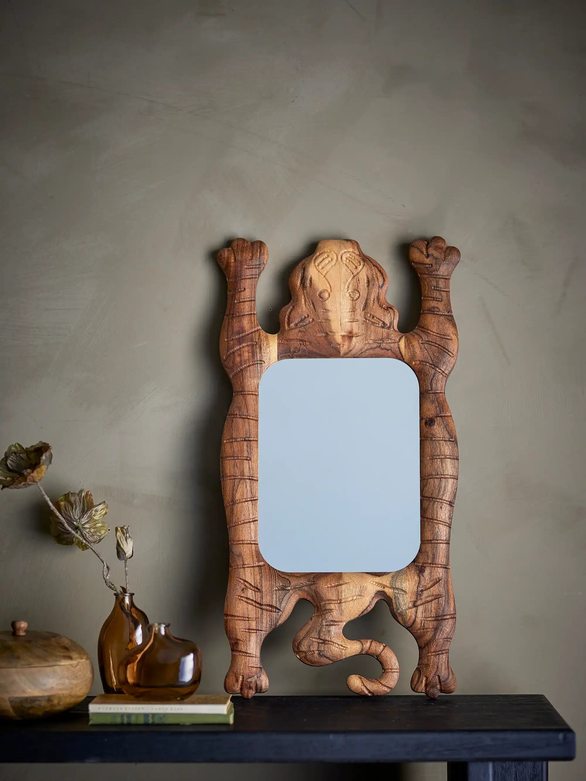 Design unique & matériau naturel : Chaque miroir est sculpté à la main dans du bois d’acacia, ce qui lui confère de subtiles variations de couleur et un caractère unique. Grâce à ses dimensions généreuses (64,5 cm de haut, 34 cm de profondeur) et à sa teinte brune naturelle, ce miroir s’intègre parfaitement dans ton entrée, salon ou chambre et marie la simplicité scandinave à la créativité.