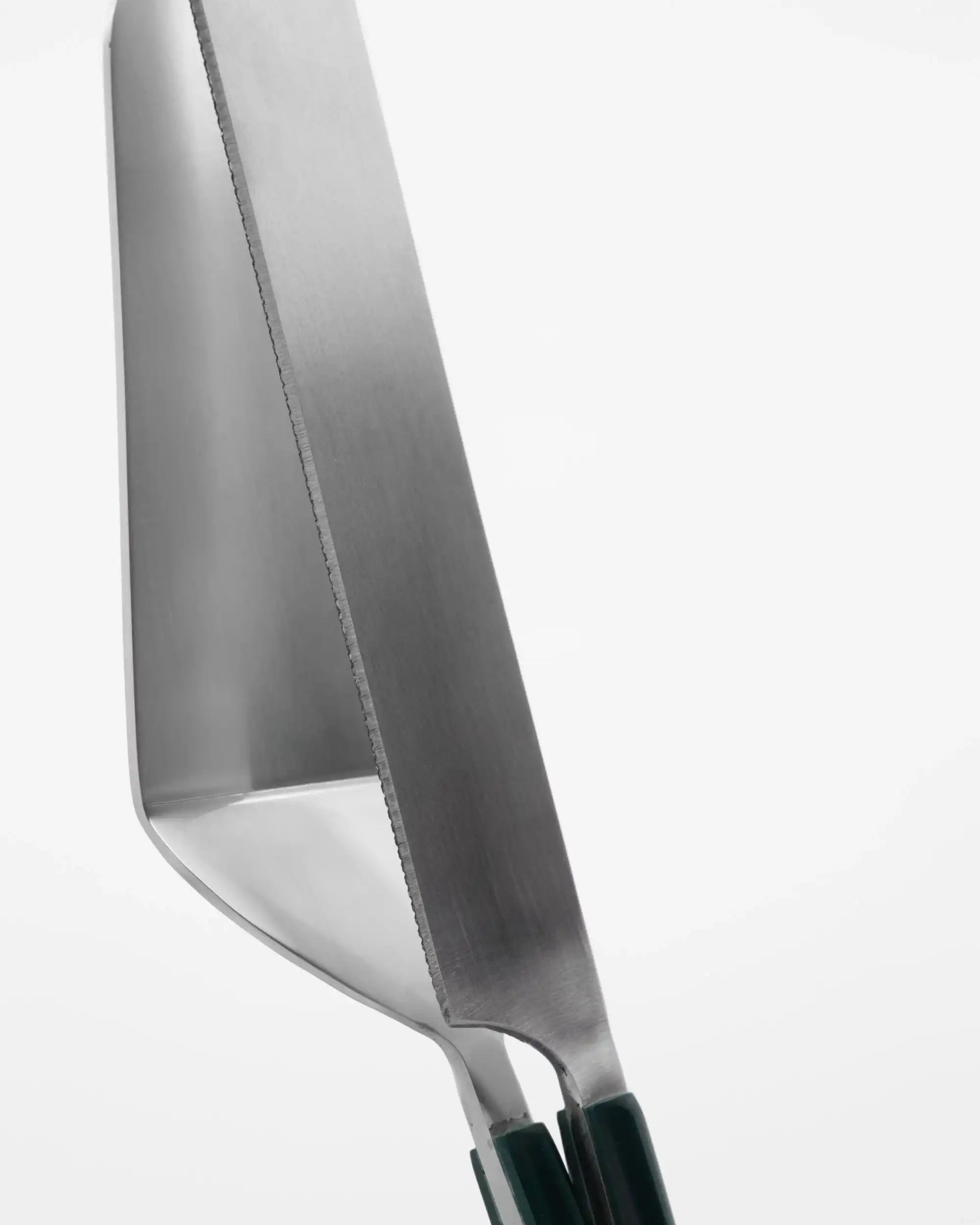 Que tu découpes un gâteau d'anniversaire ou serves une part de tarte aux pommes avec le café : avec le couteau à gâteau Lata et la pelle assortie, tu ajoutes une touche d'élégance à chaque occasion. Le contraste subtil entre l'argent brillant et les poignées vert foncé apporte du style à ta table, sans en faire trop.