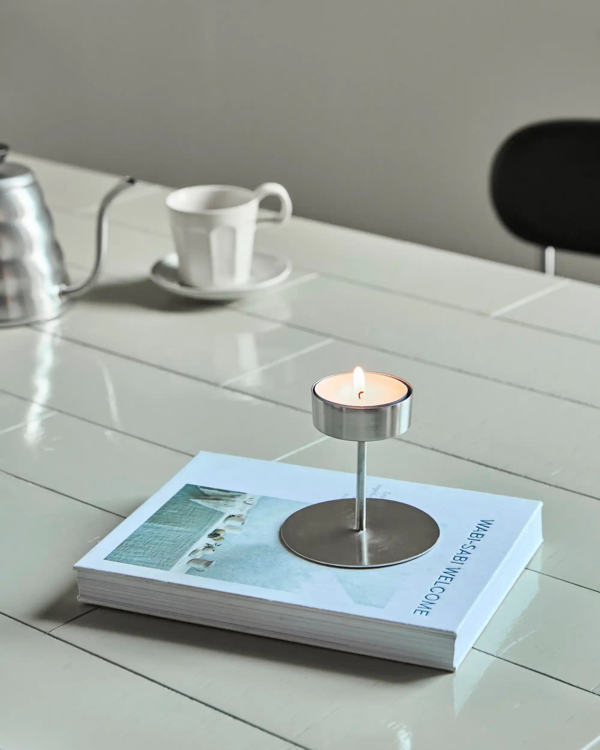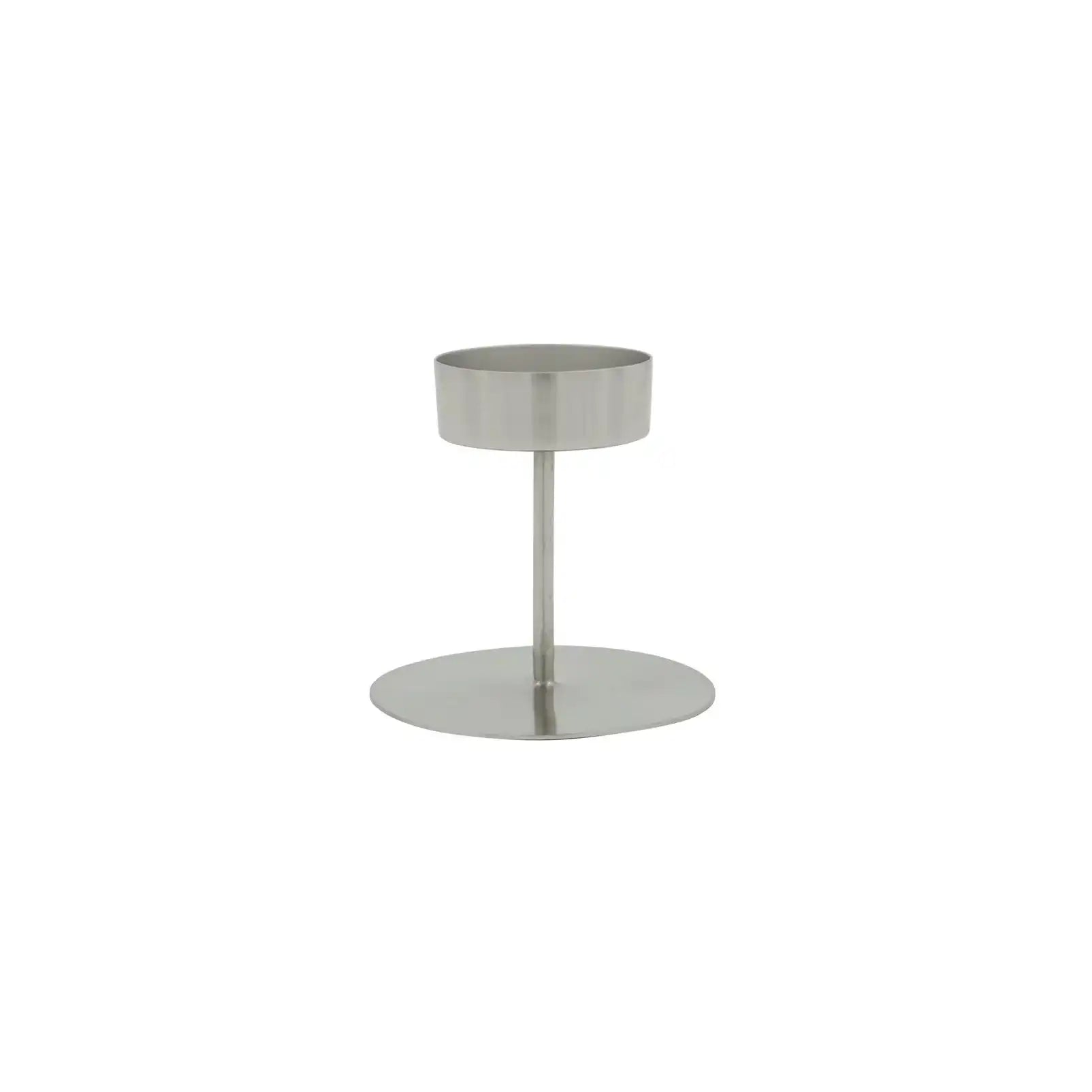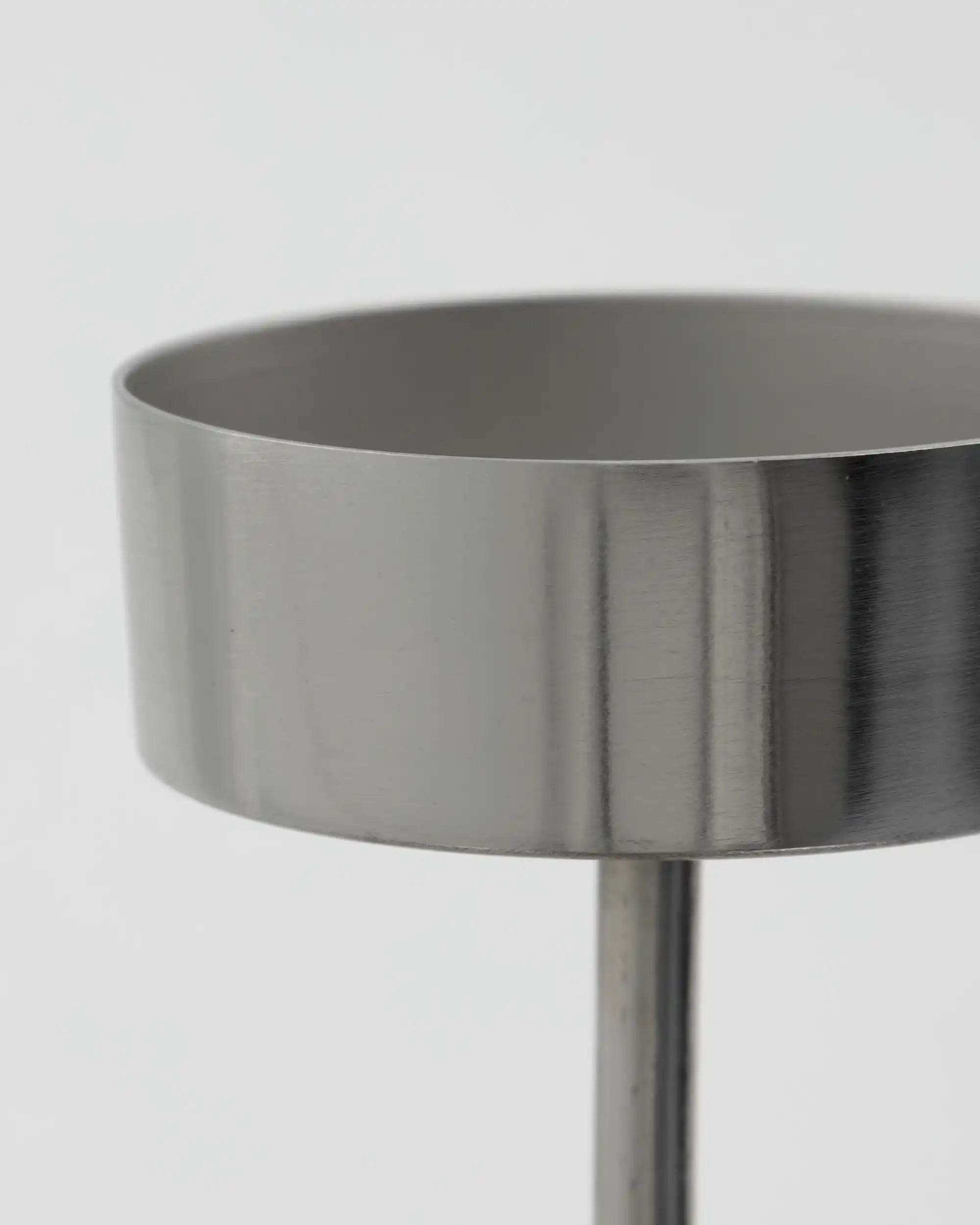 Anit est fabriqué en métal et présente une finition argentée brossée sophistiquée. Sa forme épurée et discrète apporte une atmosphère apaisante sur ton buffet, ta table à manger ou ton rebord de fenêtre. Avec une hauteur de 10 cm et un diamètre de 10,5 cm, il s’adapte parfaitement aussi bien aux bougies classiques qu’à une décoration contemporaine.