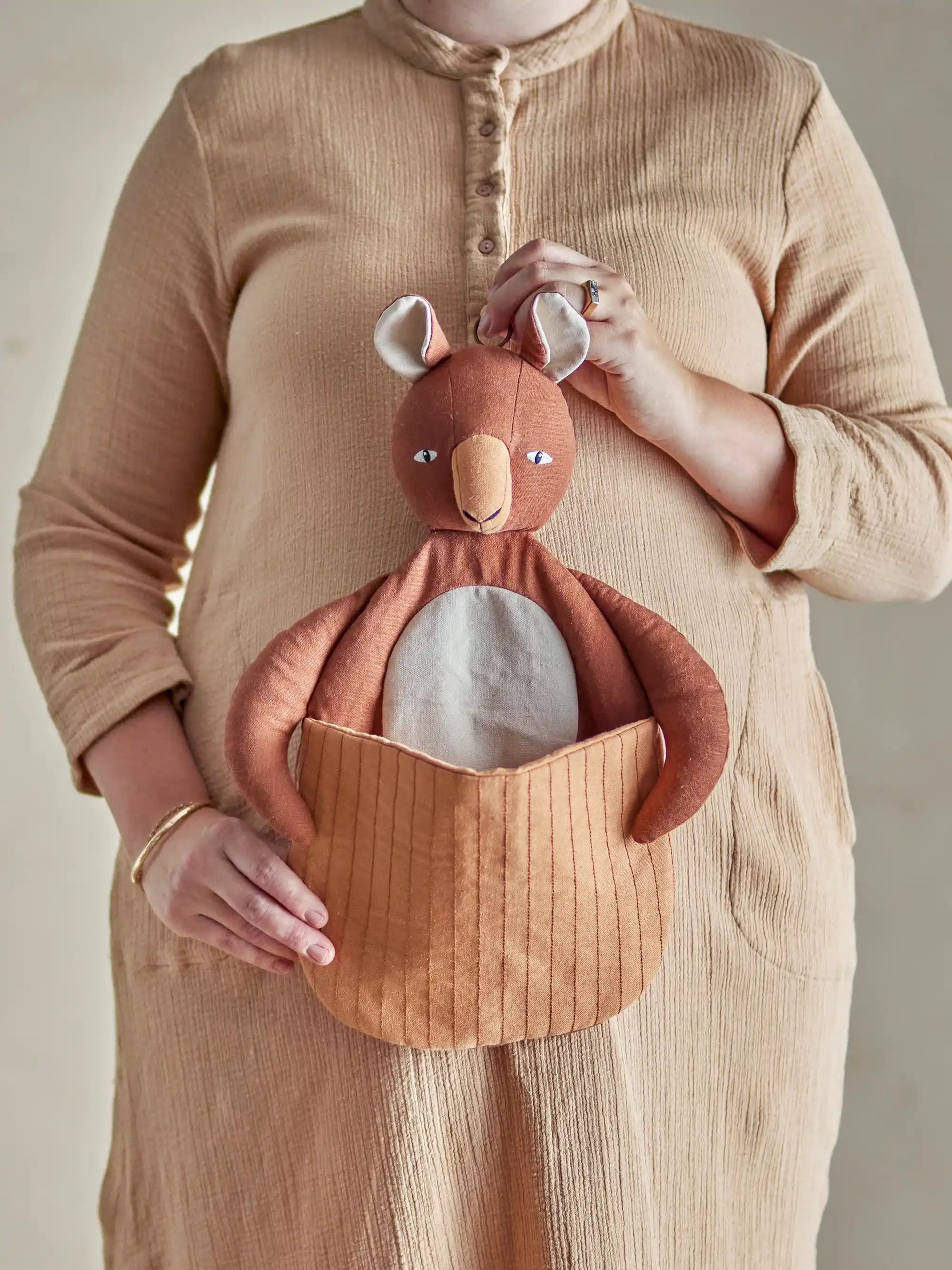Astuce d’utilisation : Accroche le kangourou à un endroit accessible pour ton enfant, par exemple à côté du lit ou au-dessus de la table à langer. Fais-en un petit rituel quotidien pour ranger ensemble. Laisse ton enfant glisser ses peluches ou petits “trésors” dans la poche. Ranger devient ainsi facile et agréable.