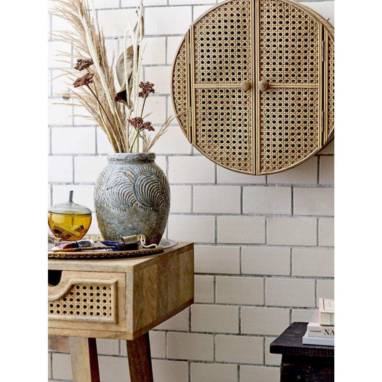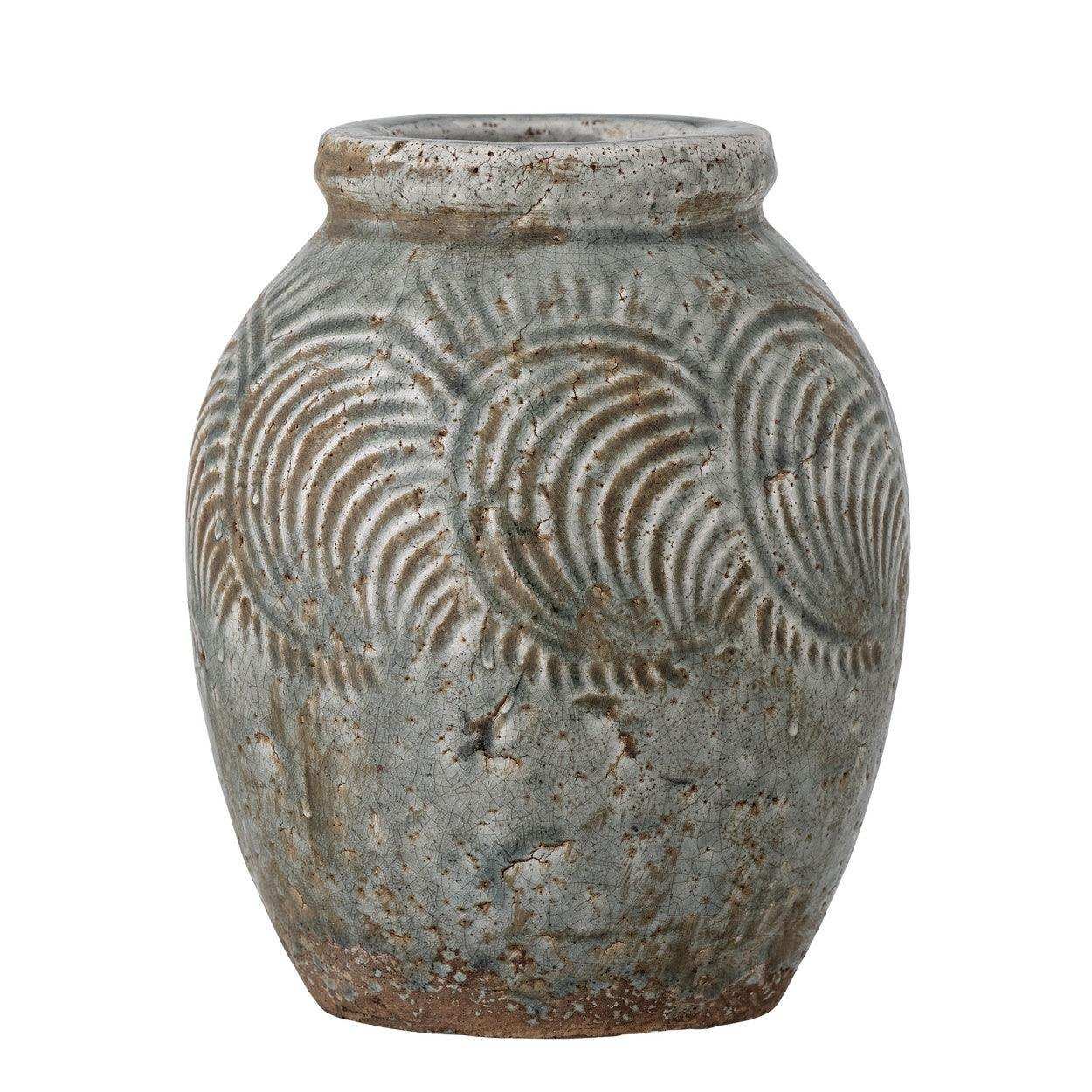 Le vase Damian vert 22cm de Bloomingville est un magnifique ajout à tout intérieur, avec son aspect rustique et son émail réactif vert unique. Ce vase, fabriqué en terre cuite, se distingue par le motif abstrait gravé qui lui confère une allure artistique et authentique. Il est parfait pour présenter des fleurs séchées ou comme objet décoratif à part entière, et grâce à sa finition artisanale, chaque vase présente de subtiles variations de couleur qui le rendent unique.