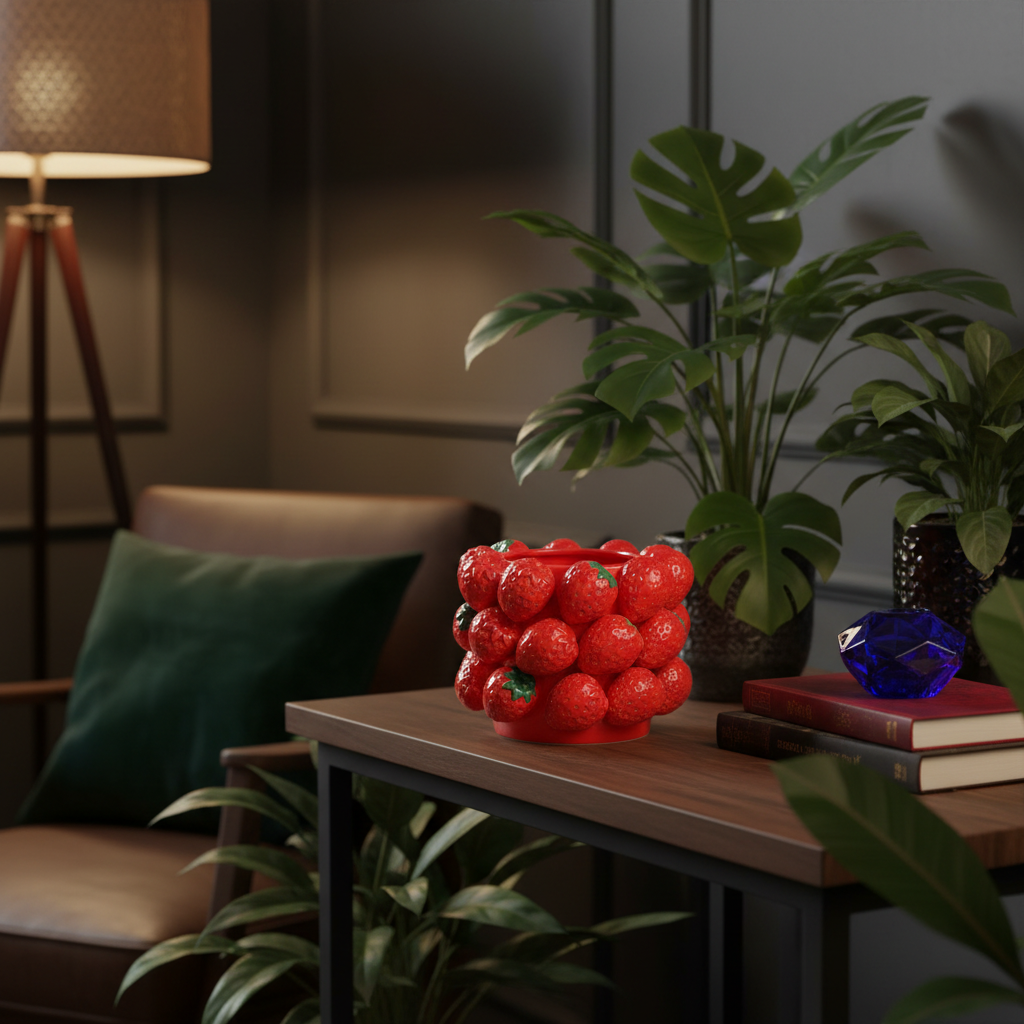 Envie de quelque chose de ludique et estival ? Le vase Strawberry Delight de House of Nature te garantit le sourire. Ce vase en céramique est décoré tout autour de fraises 3D qui semblent tout juste cueillies et collées une à une sur le vase. La céramique brillante apporte une touche fraîche et vivante, tandis que la couleur rouge vif attire immédiatement le regard.