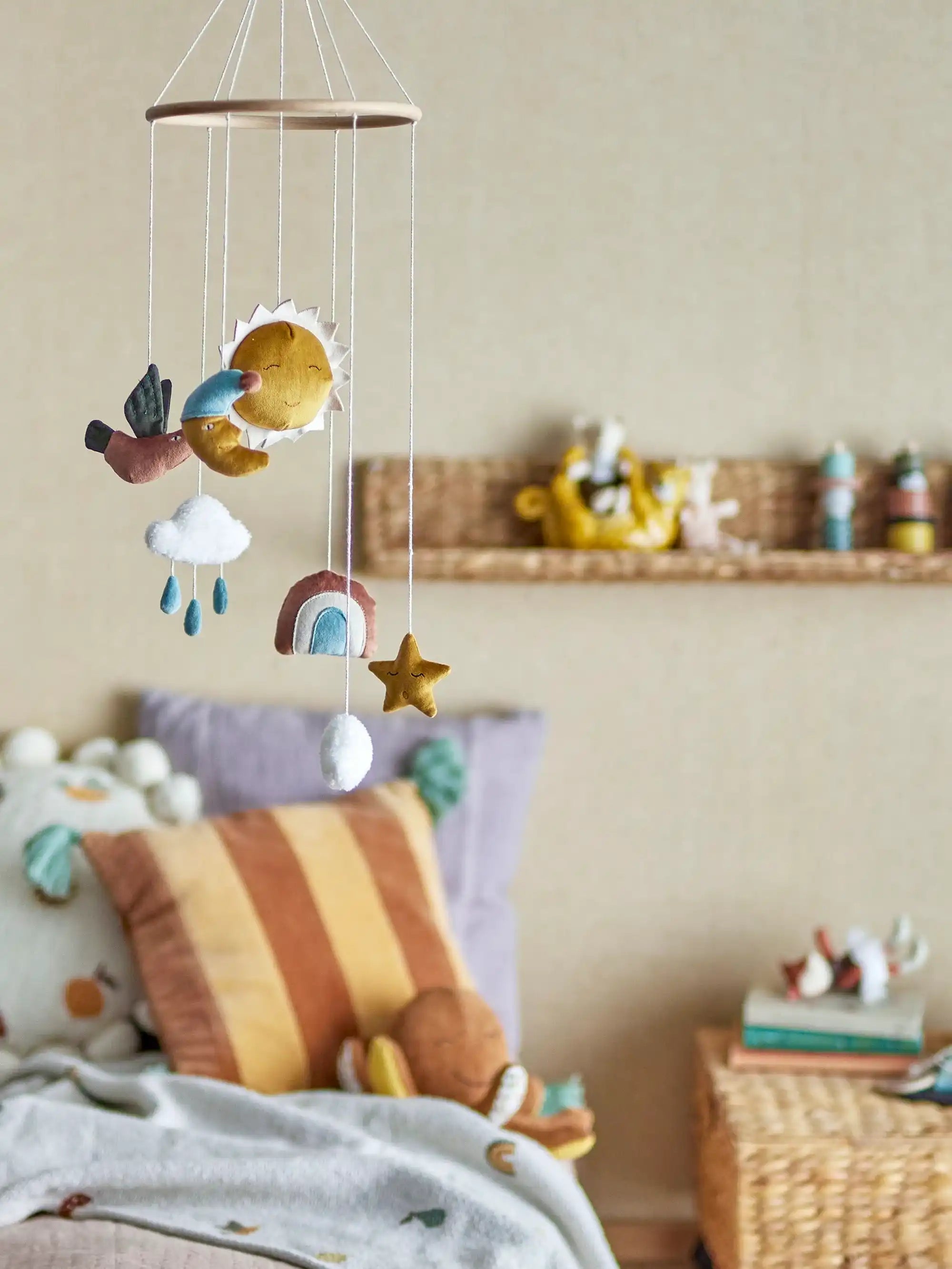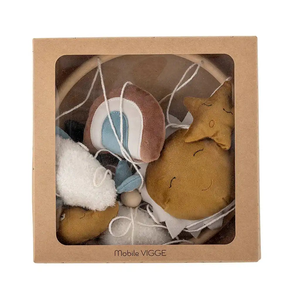 Pourquoi tu vas adorer le mobile pour bébé de BLOOMINGVILLE MINI : Le mobile Vigge de BLOOMINGVILLE MINI apporte immédiatement calme et convivialité dans la chambre de bébé. Le joli soleil et la lune se balancent doucement d’avant en arrière et rendent le coin près du berceau ou de la table à langer encore plus douillet. Le design scandinave raffiné est élégant, avec une allure chaleureuse et douce. Ce mobile procure un sentiment de sécurité et complète parfaitement la chambre.
