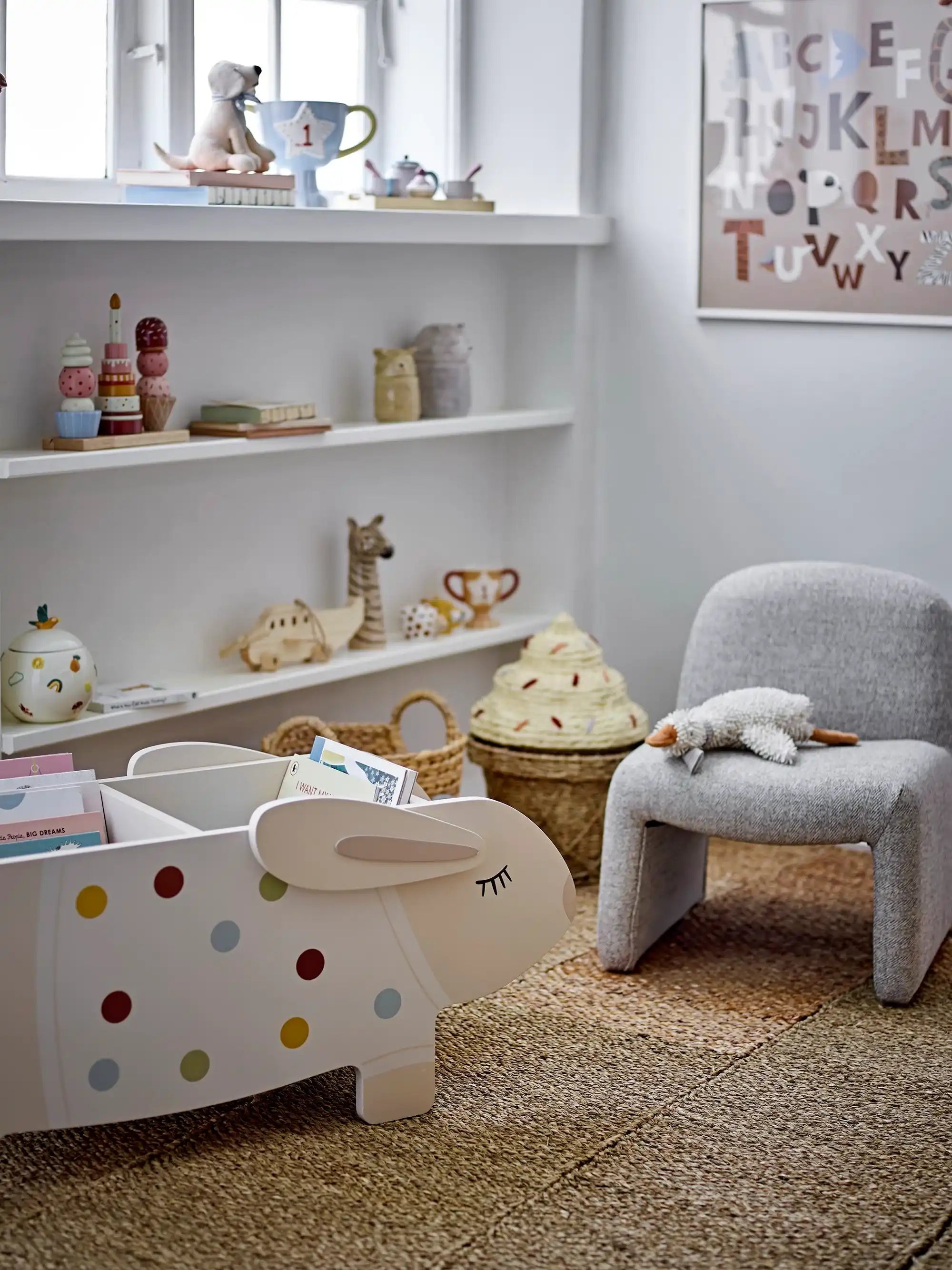 Pourquoi tu vas adorer cette bibliothèque de BLOOMINGVILLE MINI : La bibliothèque Villja apporte une ambiance joyeuse et douillette à la chambre de ton enfant. L’armoire ressemble à un adorable petit lapin avec un pull à pois – parfaite pour les enfants qui aiment ranger eux-mêmes leurs livres et jouets. Grâce aux étagères et compartiments pratiques, tout reste bien à sa place. Les formes douces et la couleur blanche fraîche s’intègrent parfaitement dans un style scandinave. Villja t’aide à organiser la chambre tout en rendant le rangement amusant et facile pour ton enfant.