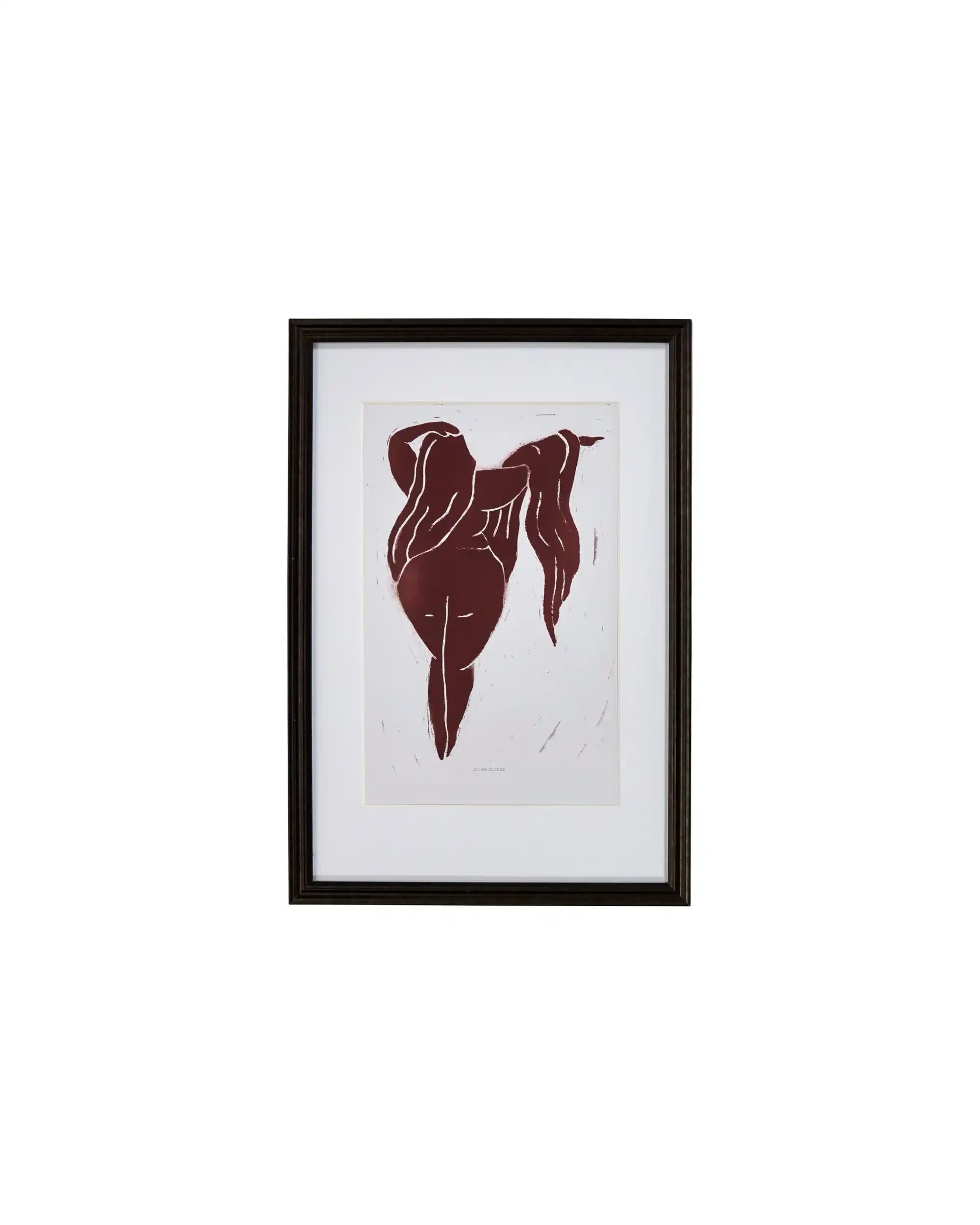 Place Lady Bordeaux seule au-dessus d'une chaise élégante ou associe-la à des tons comme le terra doux, le crème ou l’ocre pour une composition murale chaleureuse et accueillante. Ajoute quelques textiles dans des couleurs assorties pour un ensemble harmonieux.