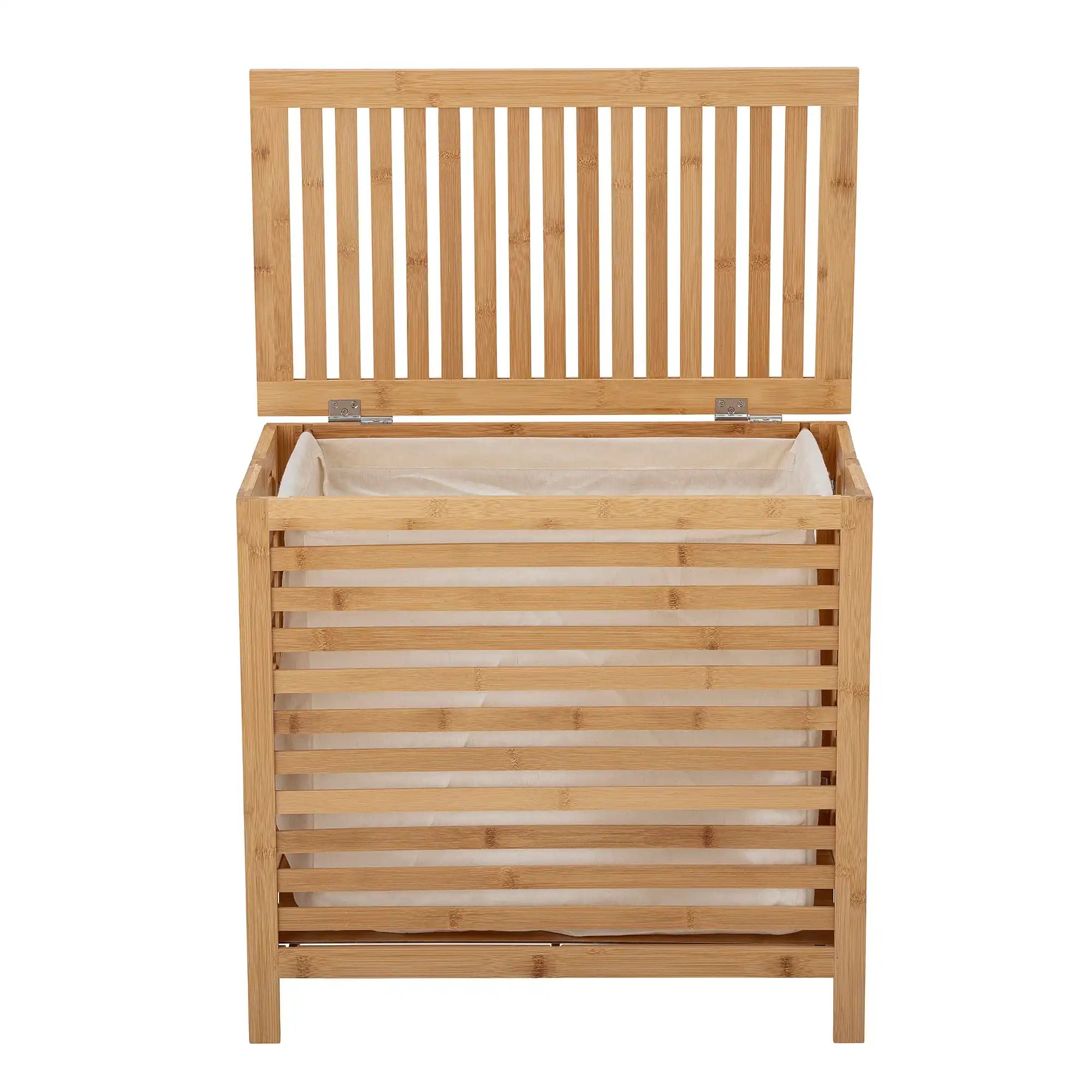 Détails & matériau : Le panier à linge est fabriqué en bambou durable et équipé d’un sac à linge en coton amovible, facile à laver. Avec ses dimensions généreuses de 35 x 51,5 x 56,5 cm, il offre suffisamment d’espace pour tout ton linge, tandis que la teinte claire du bambou s’intègre parfaitement dans un intérieur scandinave.