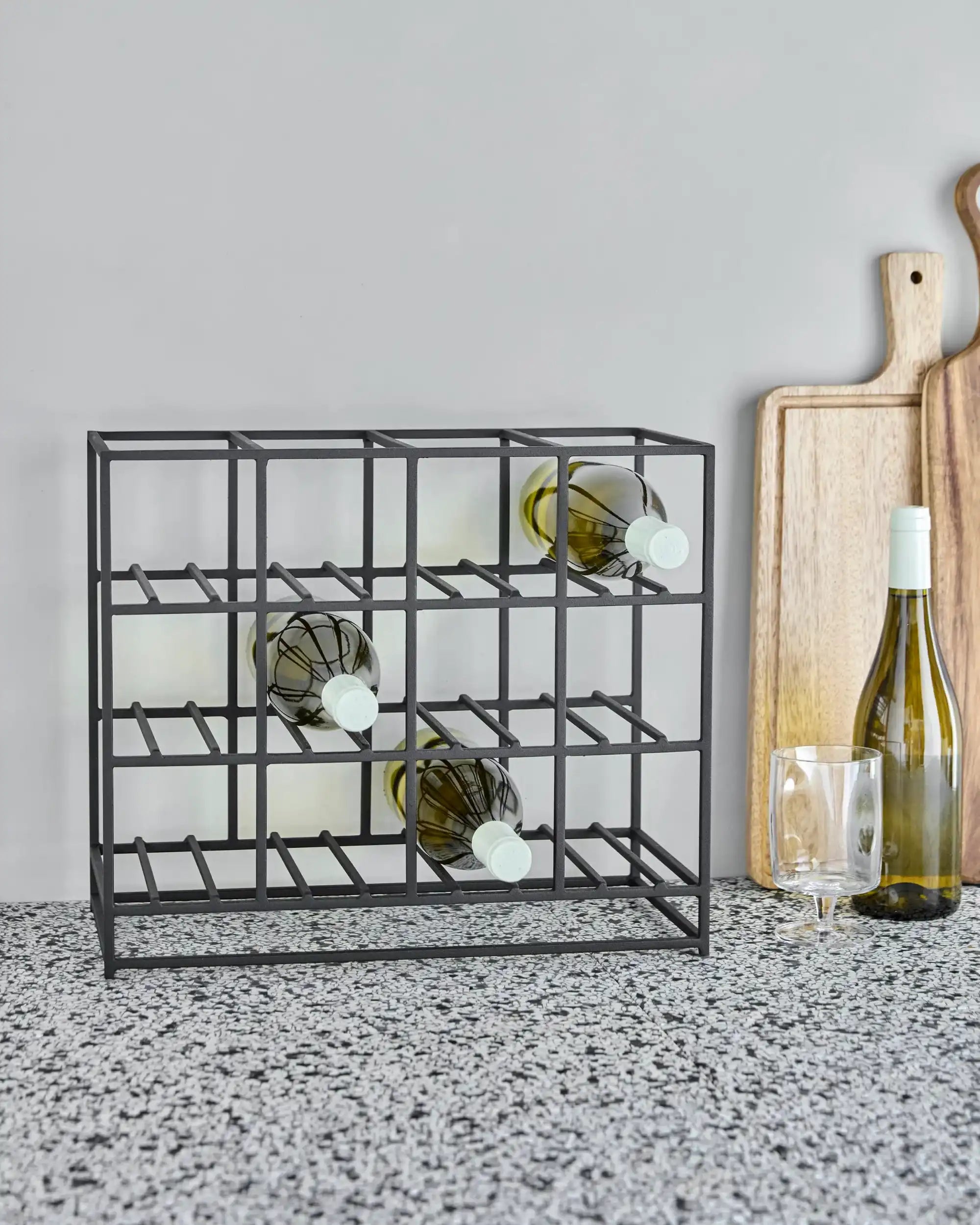 Le porte-bouteilles est fabriqué en métal robuste et offre de la place pour plusieurs bouteilles, qui reposent à l'horizontale afin que les bouchons restent bien humides. Grâce à son format compact de 40 sur 50 cm, il allie rangement pratique et design élégant — idéal pour la cuisine, la salle à manger ou ton bar à la maison.