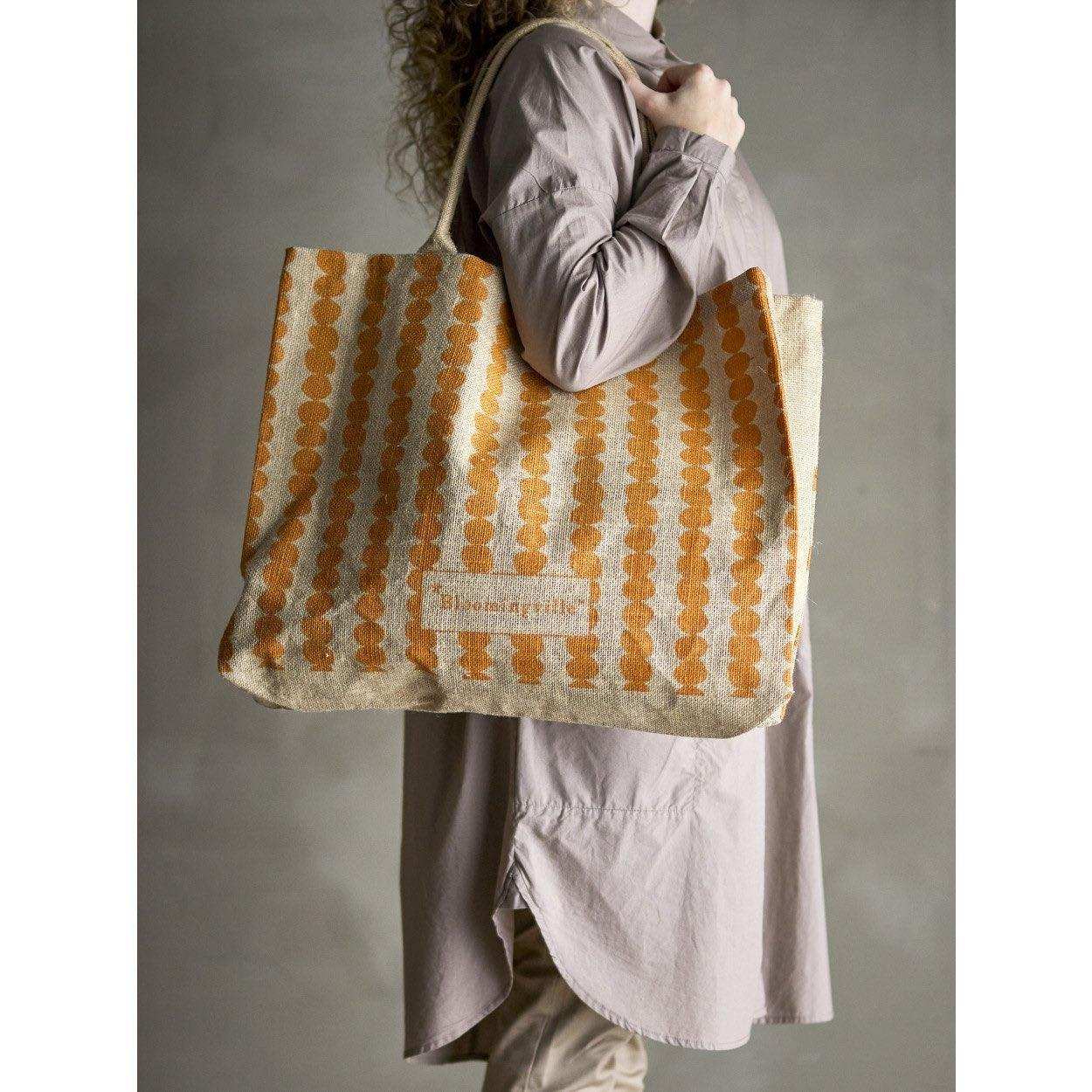 Consigli per usare e decorare con la shopper Bergamo gialla in juta di Bloomingville