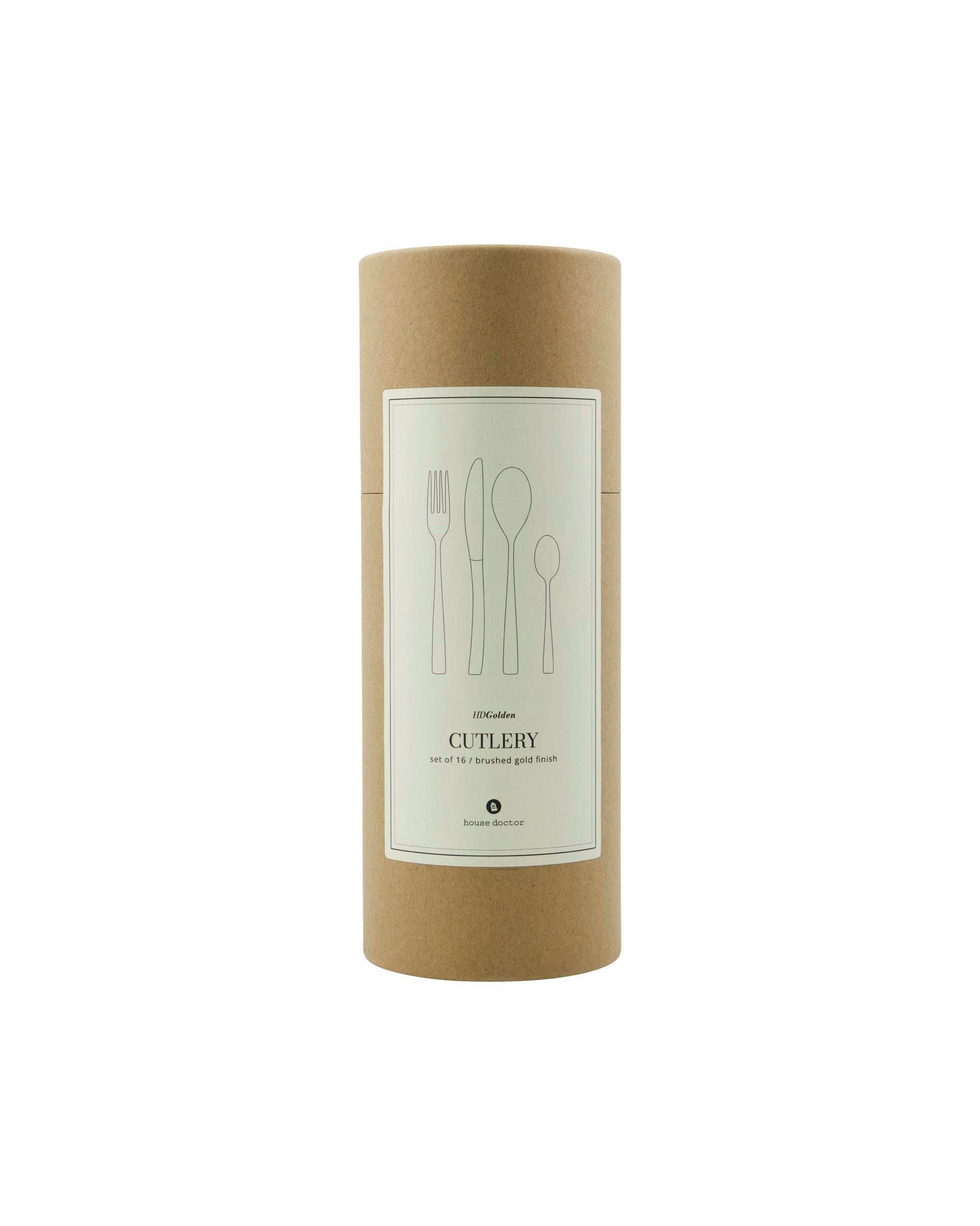 Trasforma ogni pasto in un'occasione elegante con il Golden bestekset di House Doctor. Questo set da 16 pezzi ha una raffinata finitura oro opaco, che dona subito un tocco lussuoso e sofisticato alla tua tavola.