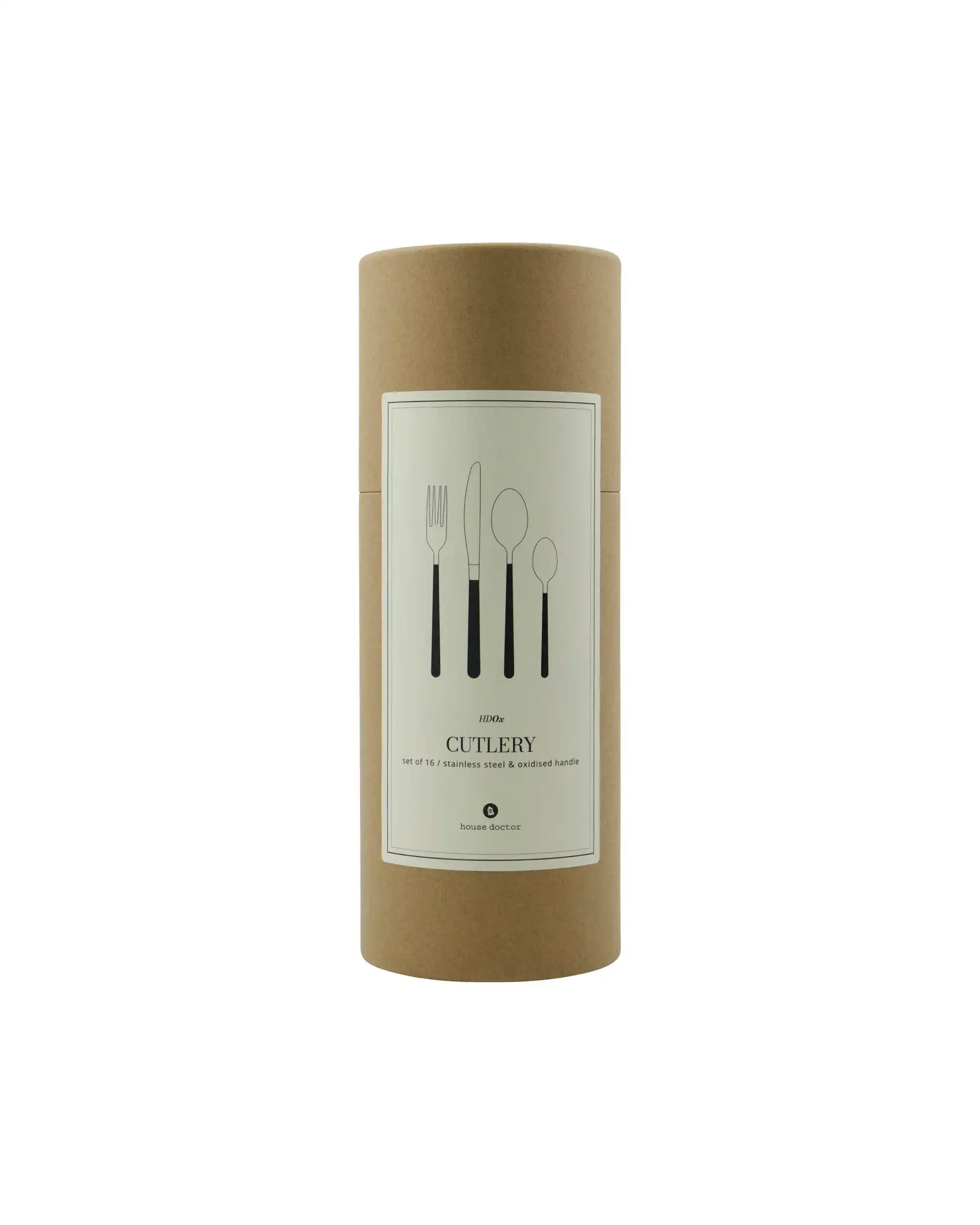 Dona subito un tocco di stile moderno alla tua tavola con il set di posate Ox in nero e argento di House Doctor. Questo set di posate da 16 pezzi unisce linee pulite a materiali di alta qualità e si distingue per il rivestimento unico in titanio sull'acciaio inox.