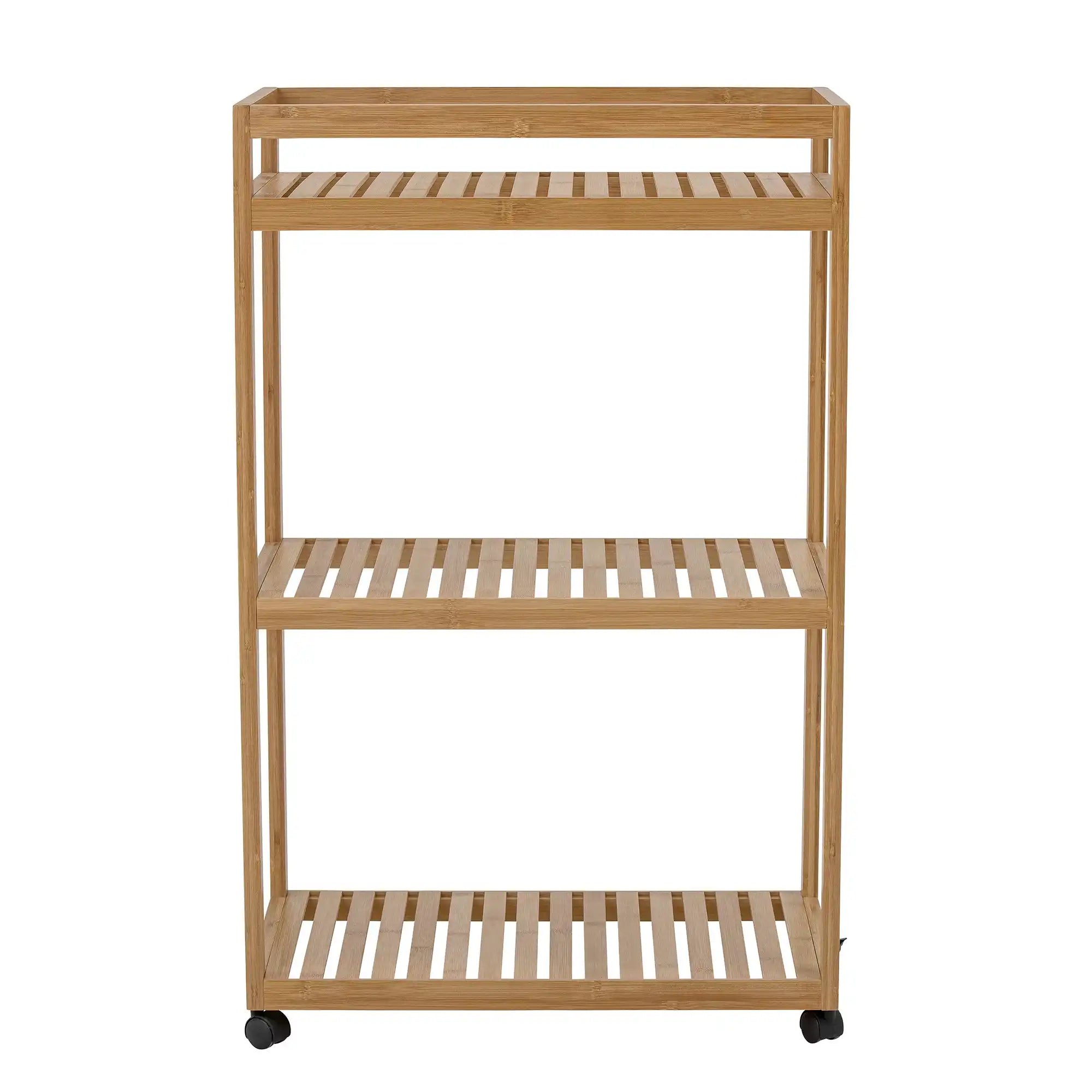 Dettagli & materiale: Questo tavolino funzionale è realizzato in robusto bambù in una calda tonalità naturale, con una finitura raffinata che richiama il design scandinavo. Con una larghezza di 30 cm, profondità di 53 cm e altezza di 85 cm, è compatto, pratico e abbastanza spazioso per tutti i tuoi oggetti essenziali. Grazie alle pratiche ruote, puoi spostare il tavolino facilmente dove ti serve.