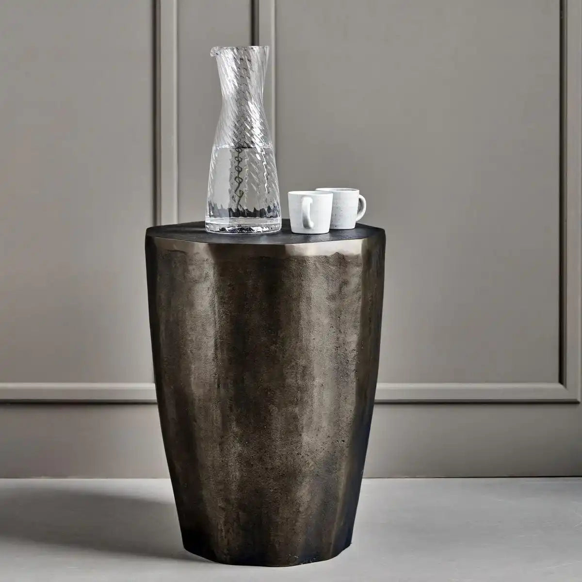 I tavolini in metallo, come il tavolino House Doctor Meta rame antico 44x33cm, non sono solo resistenti ma anche eleganti. L'uso dell'alluminio fuso garantisce una struttura robusta e stabile, mentre la finitura in ottone antico dona un aspetto caldo e lussuoso. Questo tavolino è compatto, con un'altezza di 44 cm e un diametro di 33 cm, ideale per spazi più piccoli o come tavolino extra accanto alla tua poltrona preferita. Con la sua lucentezza discreta e la texture unica, attira l'attenzione senza essere invadente, risultando una scelta versatile per diversi stili d'interni.