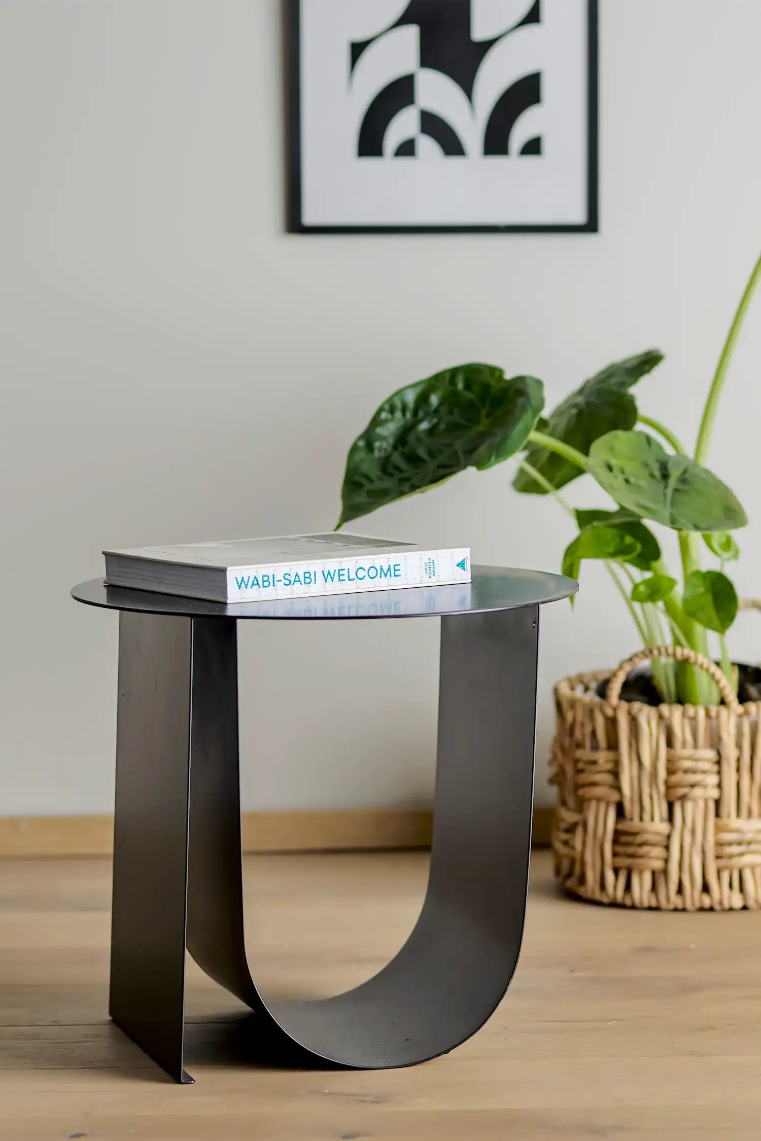 Design elegante & materiali di alta qualità: Il tavolo è interamente realizzato in metallo robusto e rifinito con un’elegante verniciatura nera. Con un diametro di 43 cm e un’altezza di 38 cm, questo mobile offre il perfetto equilibrio tra spazio e funzionalità. La base aperta crea spazio extra per riporre, ad esempio, riviste, libri o una coperta, così il tuo soggiorno sarà sempre ordinato.