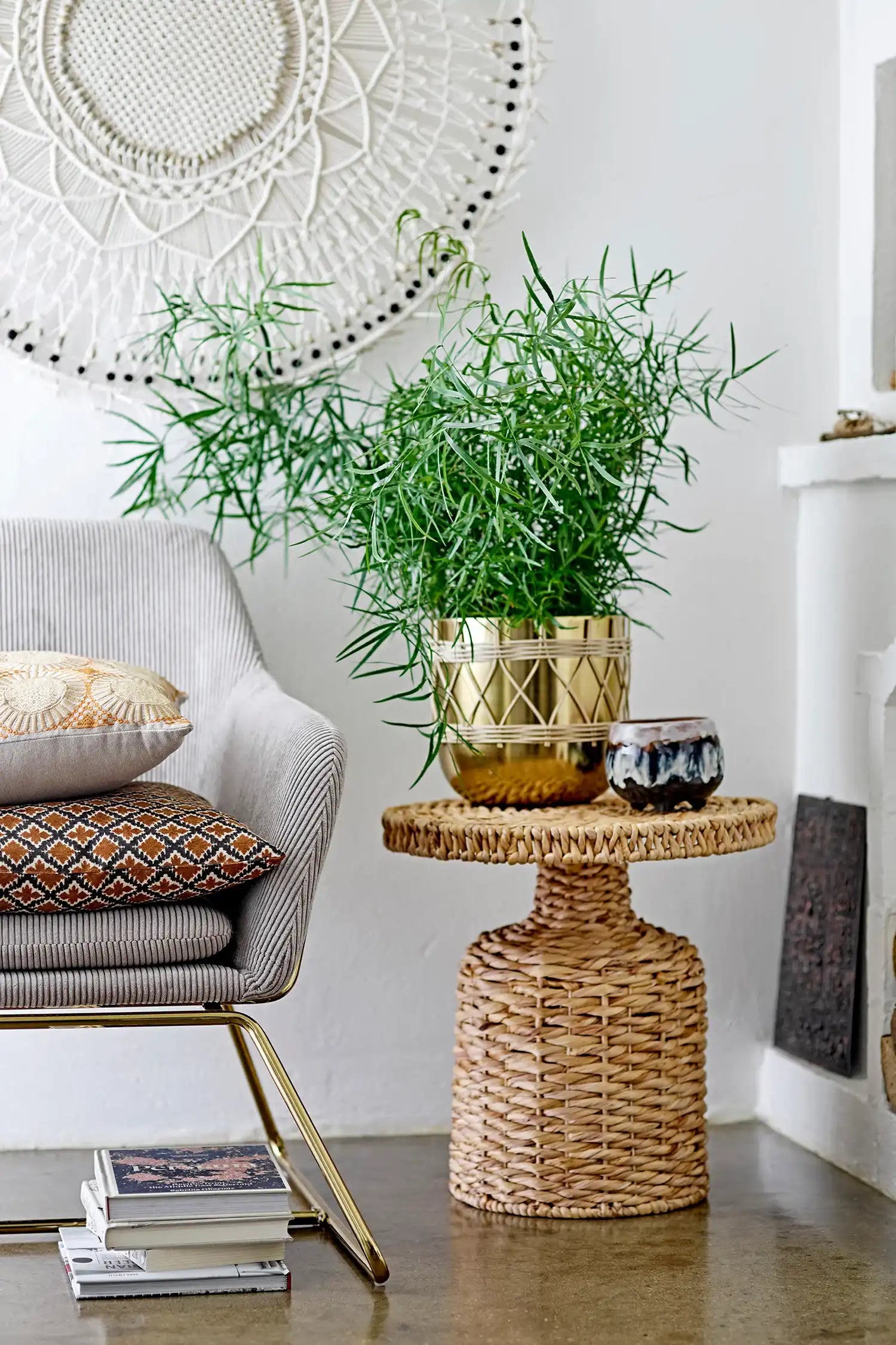 Dettagli & materiale: Questo tavolo rotondo è realizzato con cura in resistente giacinto d’acqua e ha un generoso diametro di 46 cm. Il design intrecciato a mano è sia robusto che leggero e offre una base stabile per i tuoi accessori preferiti, la tua tazza di caffè o un bel mazzo di fiori. Grazie ai materiali naturali, questo tavolino porta un tocco di natura dentro casa.