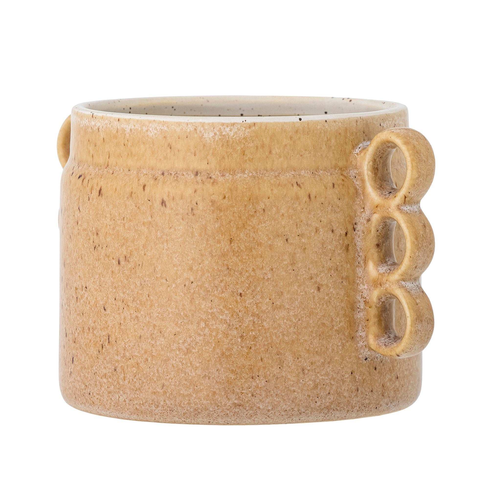 Dettagli & materiale: Il vaso Souri è realizzato in terracotta e rifinito con uno smalto reattivo in tonalità marroni e naturali. Grazie alla decorazione manuale, ogni vaso è unico; minime differenze di colore e disegno donano un aspetto vivace. Accenti di design come i piccoli anelli su entrambi i lati aggiungono carattere e texture. Dimensioni: ø 15 cm, altezza 12 cm. Grazie a questo formato compatto, si adatta facilmente anche alle superfici più piccole, senza perdere fascino.