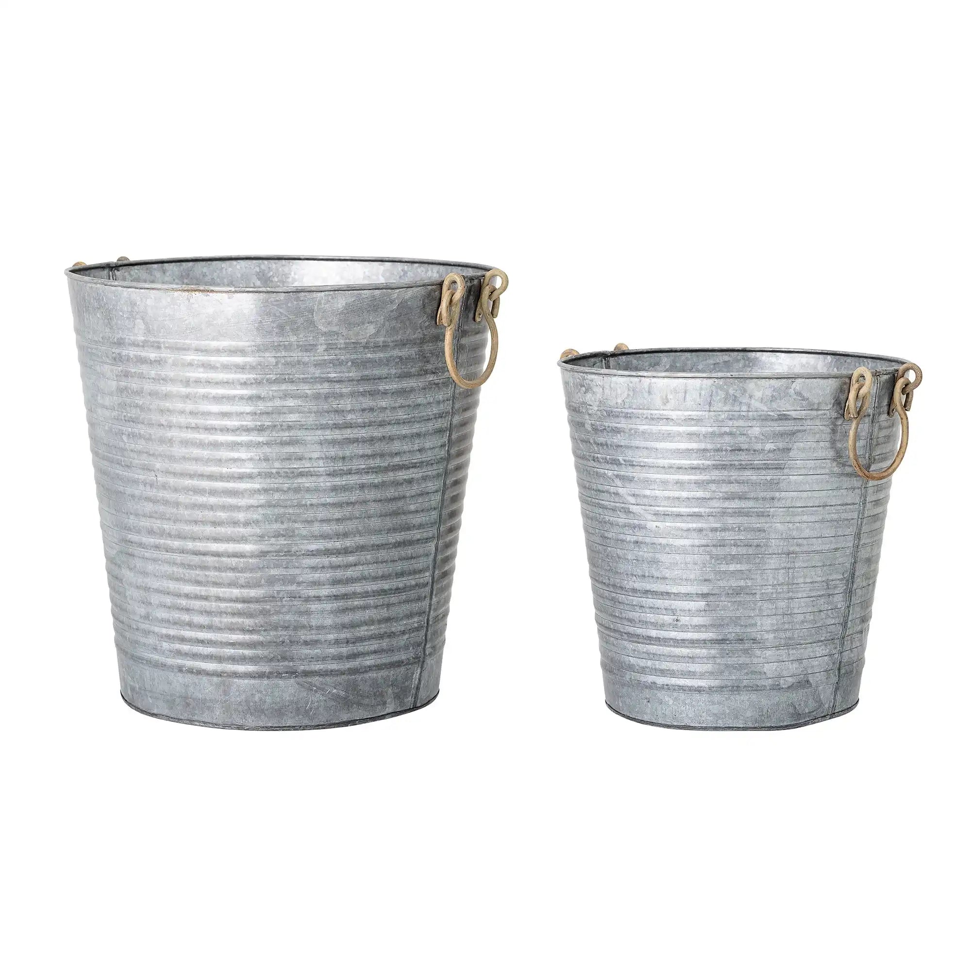 Materiale & dettagli: I vasi sono realizzati in ferro zincato con una calda tonalità di grigio, che li rende estremamente resistenti alle intemperie. Il rivestimento in zinco tiene lontana la ruggine, così potrai godere a lungo del loro bell’aspetto. Grazie alle dimensioni generose (50 x 50 cm e 40 x 40 cm) hai spazio a sufficienza per grandi piante, arbusti o fiori. Le maniglie in metallo rendono lo spostamento particolarmente semplice.