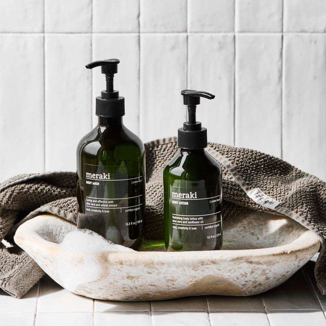 Usa questa bodylotion dopo la doccia per idratare al meglio la tua pelle. Abbinala agli altri prodotti della linea Meraki Cotton Haze, come il bodywash o il sapone per le mani, per una routine di cura completa. Metti il flacone su un bel vassoio in bagno o sul tuo tavolo da trucco per una presentazione elegante. Il design minimalista del flacone si adatta perfettamente sia agli interni moderni che classici.
