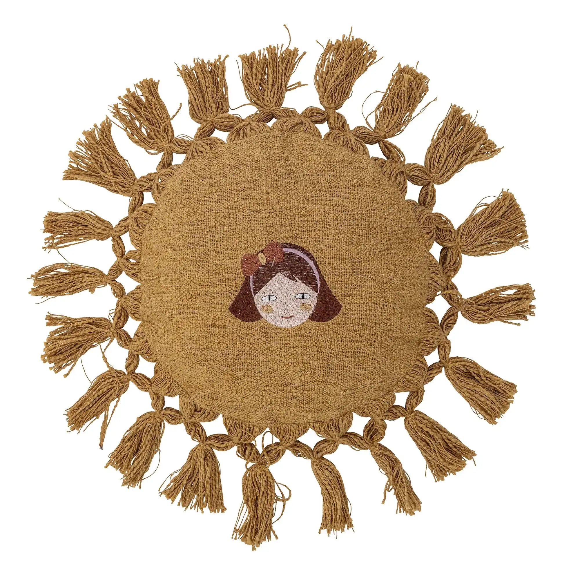 Perché vuoi questo cuscino di Bloomingville MINI: Questo cuscino rotondo Elinna porta calore e accoglienza nella cameretta. Il colore giallo solare, la bambina ricamata e le allegre nappine lo rendono davvero speciale. Mettilo sul letto, nell’angolo lettura o su una panchina: così la stanza diventa subito più allegra. Il cuscino è piacevolmente morbido e si distingue per la sua forma giocosa. Semplice stile scandinavo con dettagli dolci – perfetto per il tuo angolo preferito.