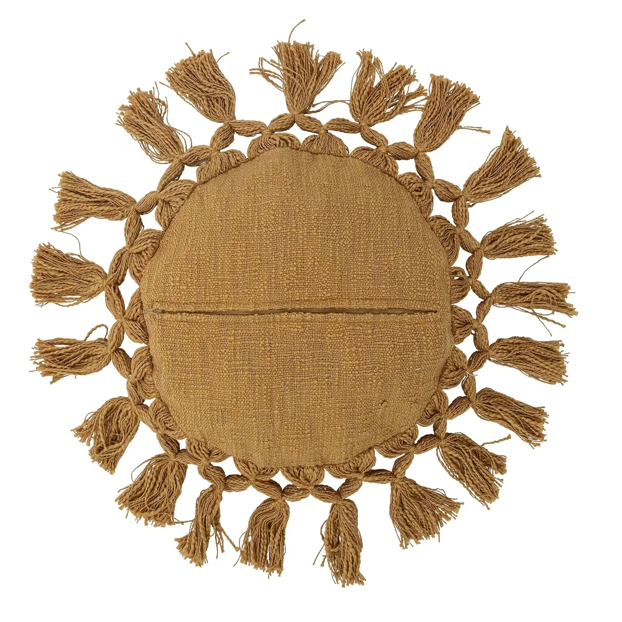 Consiglio d’uso: Gioca con i materiali: metti Elinna sopra un cuscino più grande per dare profondità, oppure abbinalo a biancheria da letto a righe per un effetto allegro. In veranda sta benissimo su una sedia in rattan o una panchina di legno, insieme a un plaid bianco o verde. Consiglio: disponi due o tre cuscini rotondi in diverse tonalità di giallo o beige insieme. Così crei facilmente un angolo accogliente per leggere, giocare o rilassarti.