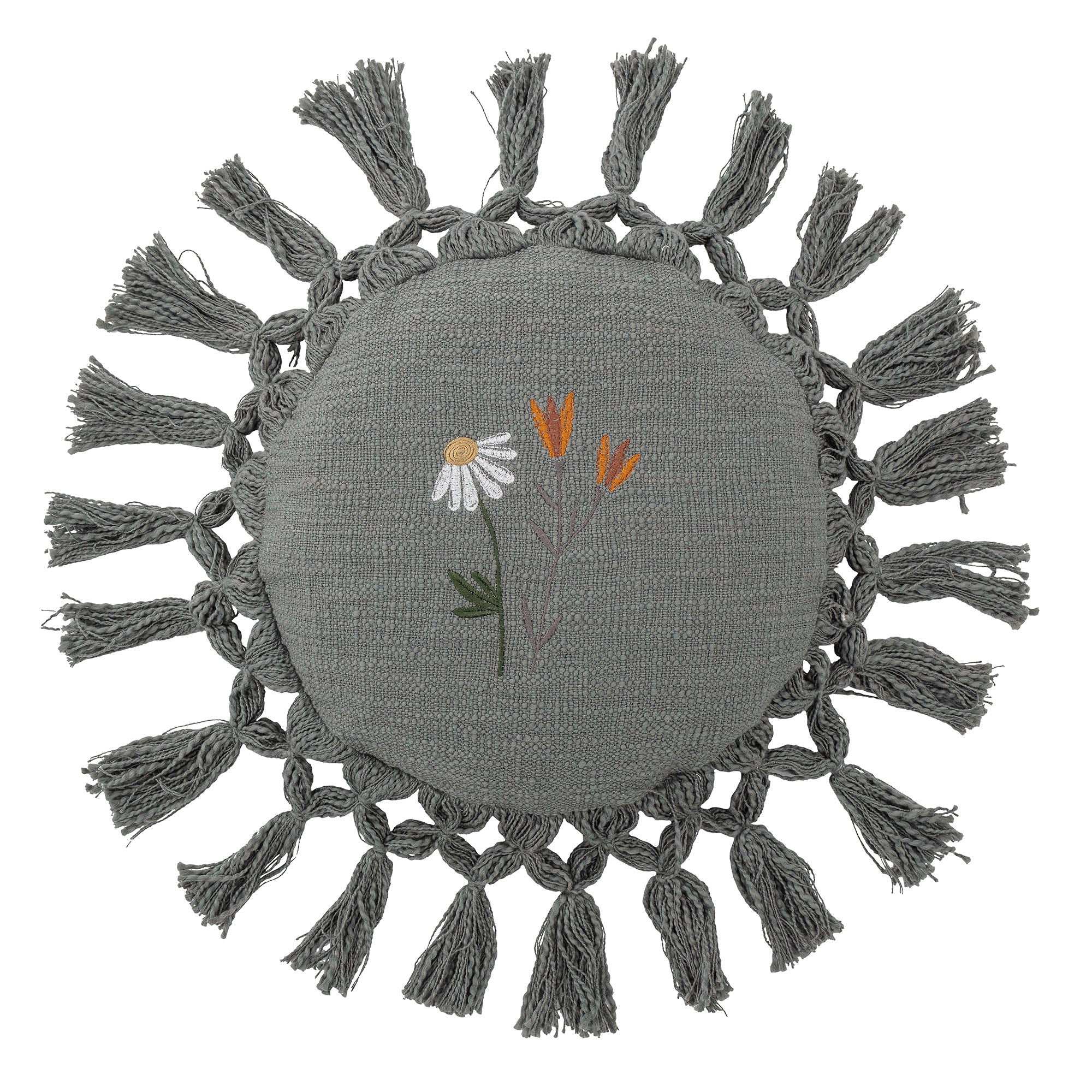 Dettagli & materiale: Realizzato in cotone riciclato in una bellissima tonalità di blu e ha una forma rotonda di ø 35 cm. I grandi pon pon lo rendono giocoso e il fiore centrale dona un aspetto dolce. Il cotone riciclato è piacevole al tatto e aiuta a risparmiare risorse. Grazie alle dimensioni pratiche, puoi posizionare facilmente il cuscino su una sedia, un letto o un davanzale. La forma rotonda rende ogni ambiente più accogliente.