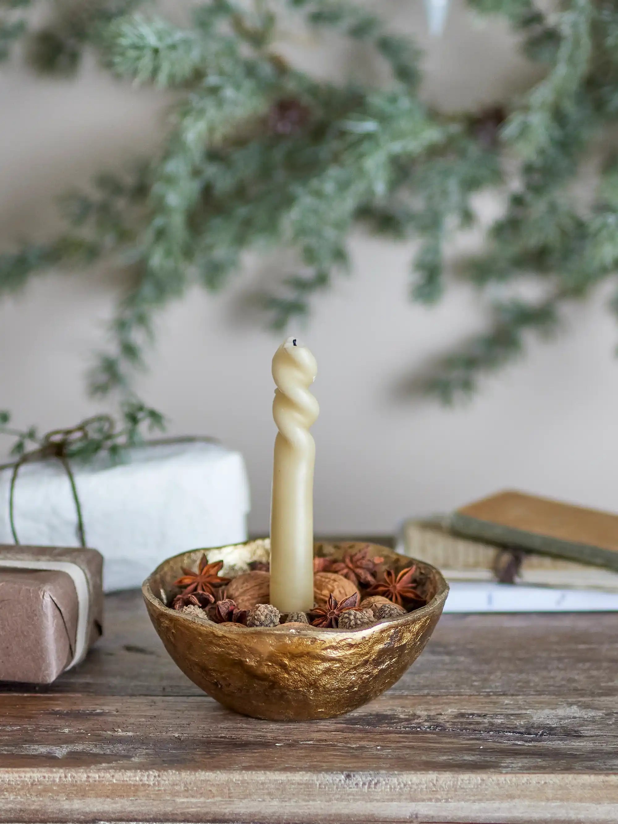 Che tu scelga di mettere il portacandele sulla tavola di Natale o come punto focale alla finestra, dona sempre un tocco di atmosfera senza sforzo. La finitura dorata e lucida riflette splendidamente la luce delle candele, rendendo ogni ambiente invitante. Un'idea in più: decora la Nataline con pigne o rametti verdi per un tocco personale durante le feste.