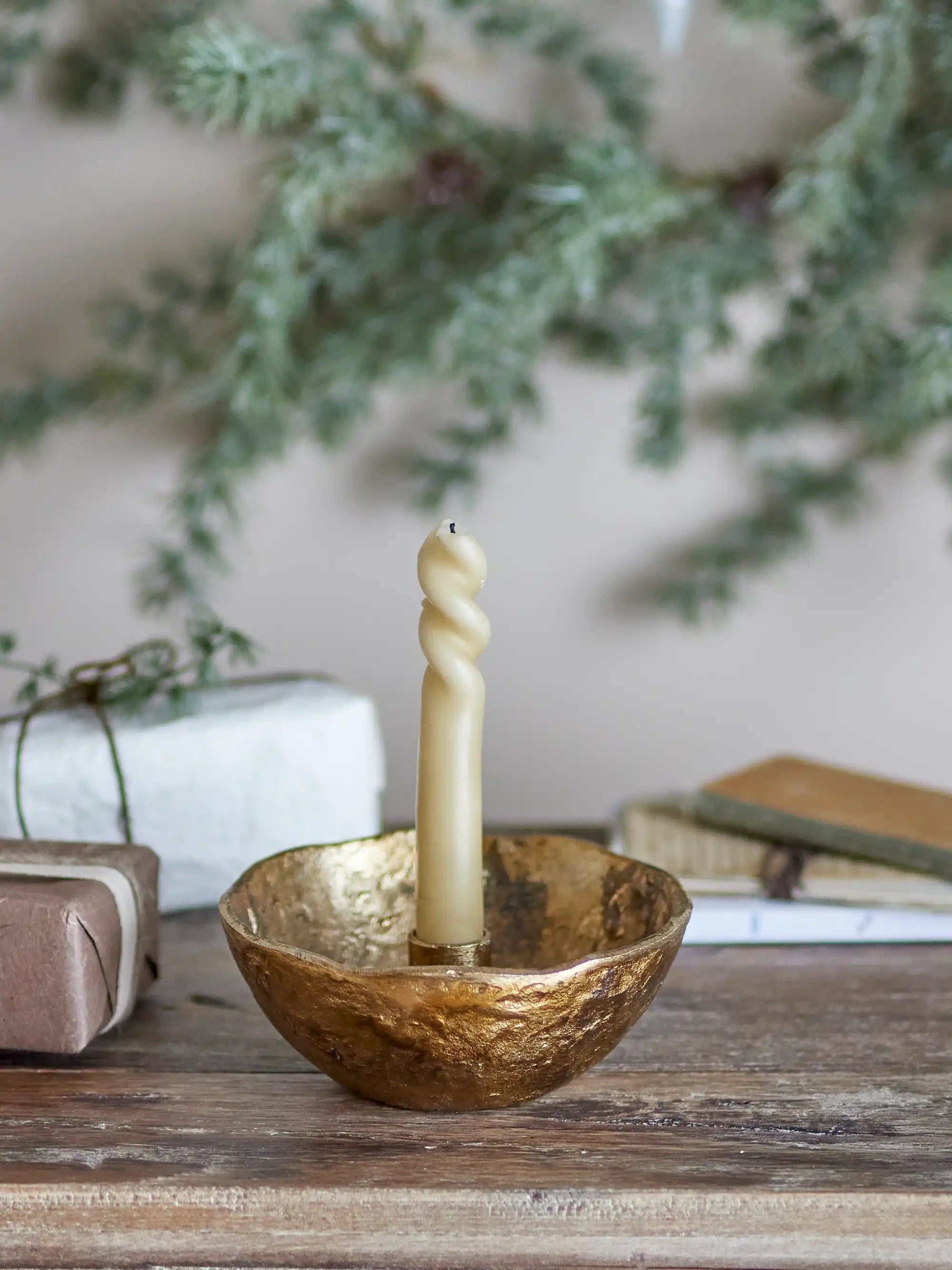 Porta calore e atmosfera in casa con il portacandele in alluminio dorato Nataline di Bloomingville. Questo elegante portacandele è realizzato con cura in alluminio robusto e rifinito in una raffinata tonalità dorata. Grazie alla sua forma unica e organica, la Nataline aggiunge quel tocco di design scandinavo moderno al tuo arredamento.