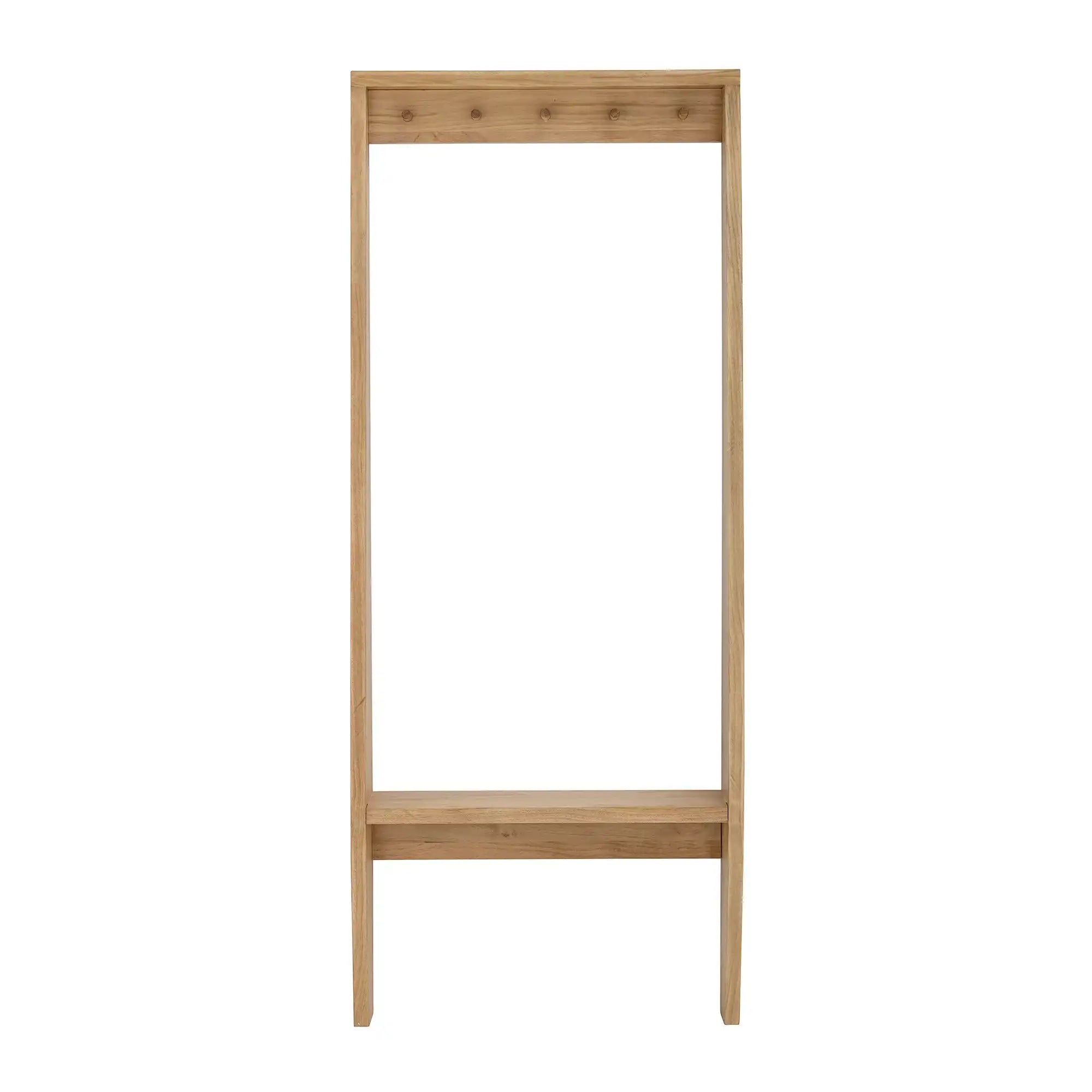 Eleganza & materiale: Realizzato in bellissimo legno di pino chiaro (naturale), questo appendiabiti con cinque ganci robusti e una mensola pratica è pensato in ogni dettaglio. L’altezza generosa di 180 cm ti permette di appendere facilmente anche i cappotti lunghi, mentre piccoli accessori o chiavi trovano posto sulla mensola superiore.