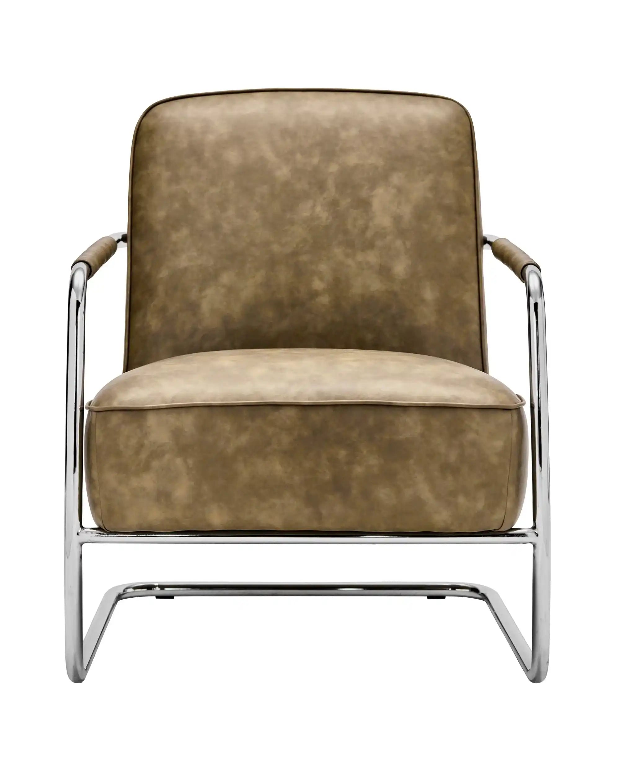 Porta subito atmosfera e comfort in casa con la poltrona Lounge, Comma, in una splendida tonalità kaki. Il moderno telaio in acciaio curvato e il rivestimento effetto pelle morbida rendono questa poltrona un vero punto focale nel tuo soggiorno, angolo lettura o zona relax. Grazie alle generose dimensioni (77 x 67 x 82 cm), ti godi il massimo relax con stile.
