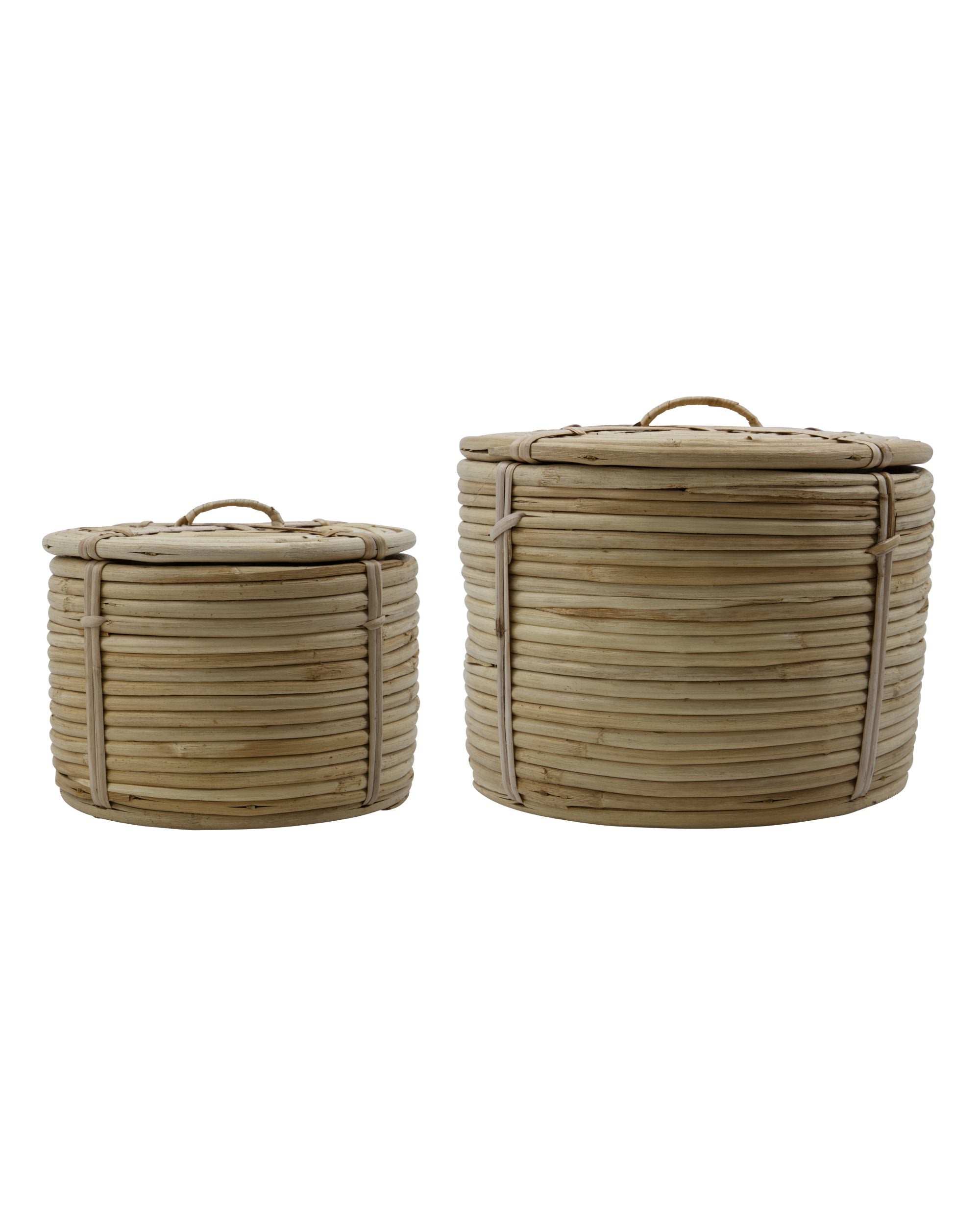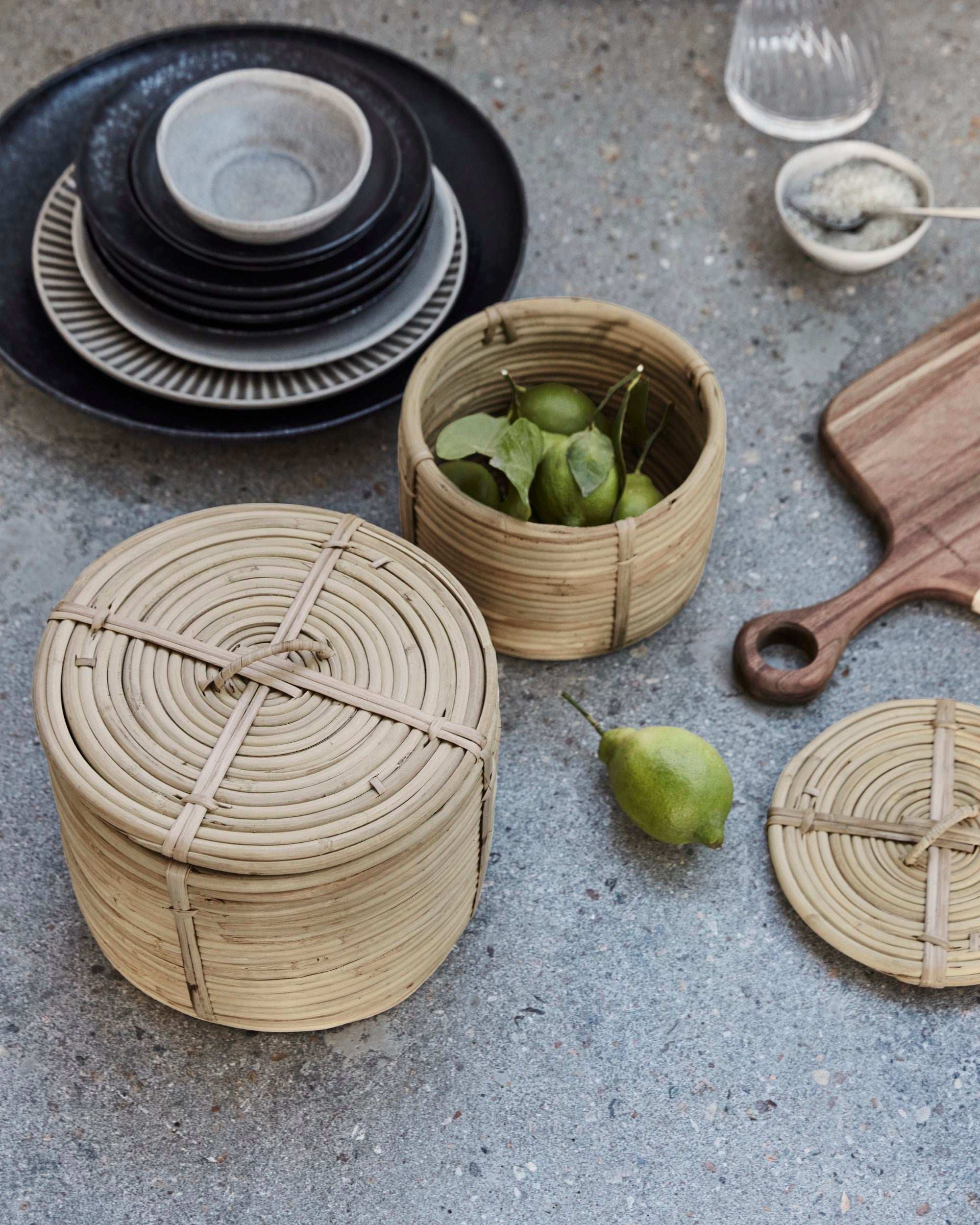 Porta ordine in casa con un'eleganza naturale grazie ai Cestini con coperchio Round 22 cm naturel di House Doctor. Questo splendido set di due cestini rotondi è realizzato a mano in rattan e bambù e trasmette calma e semplicità. Le forme arrotondate, la raffinata lavorazione intrecciata e il pratico coperchio rendono questi cestini perfetti per riporre con stile gli oggetti di tutti i giorni.