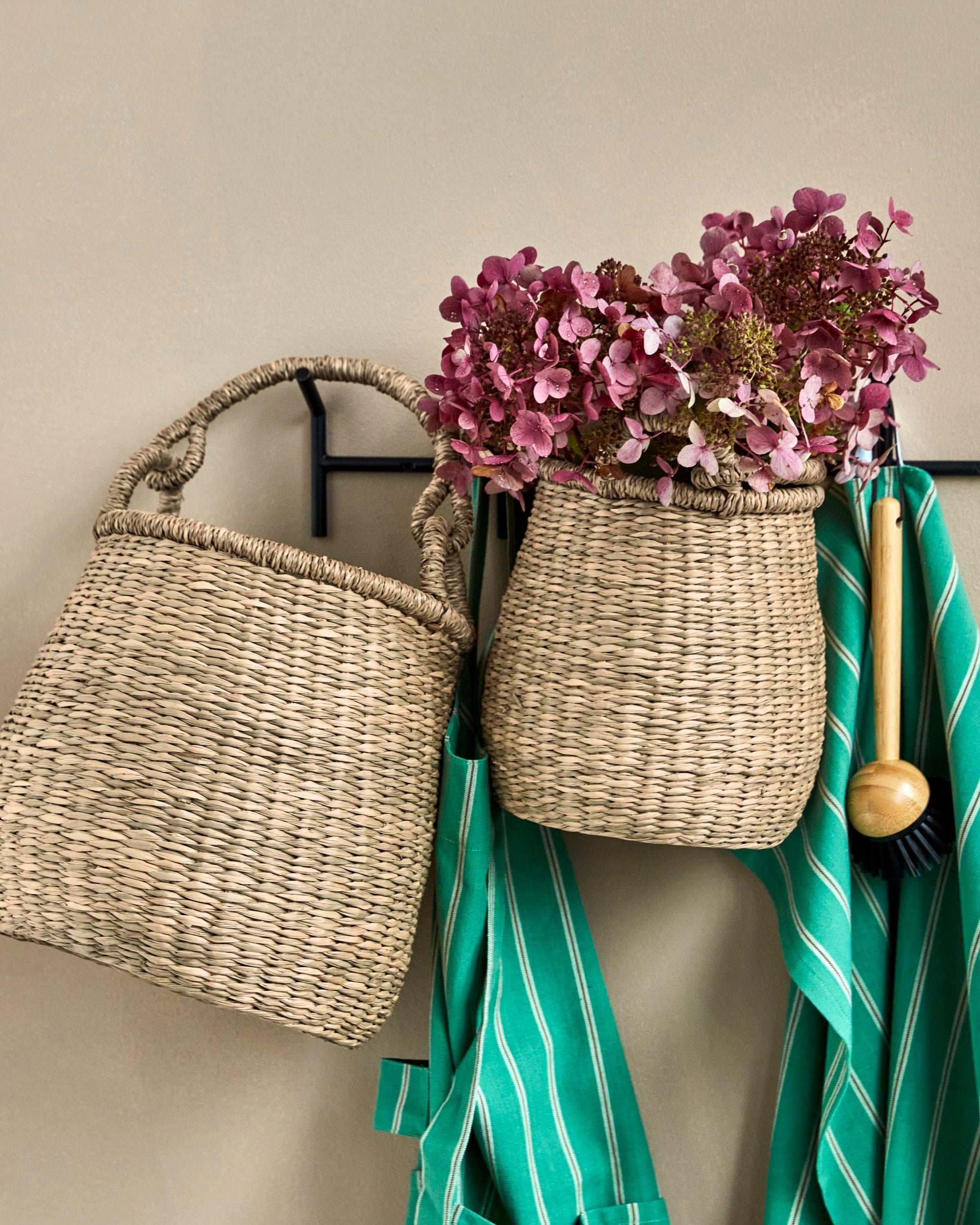 Cerchi una soluzione salvaspazio intelligente e bella? Il set di cestini Cesta di House Doctor unisce il meglio di entrambi i mondi. Questo set comprende due cestini intrecciati a mano in resistente erba marina, in tonalità naturali che si adattano facilmente a qualsiasi interno. Grazie alle forme organiche e al look discreto, sono perfetti per riporre con stile piccoli oggetti come strofinacci, mollette, gomitoli o anche riviste.