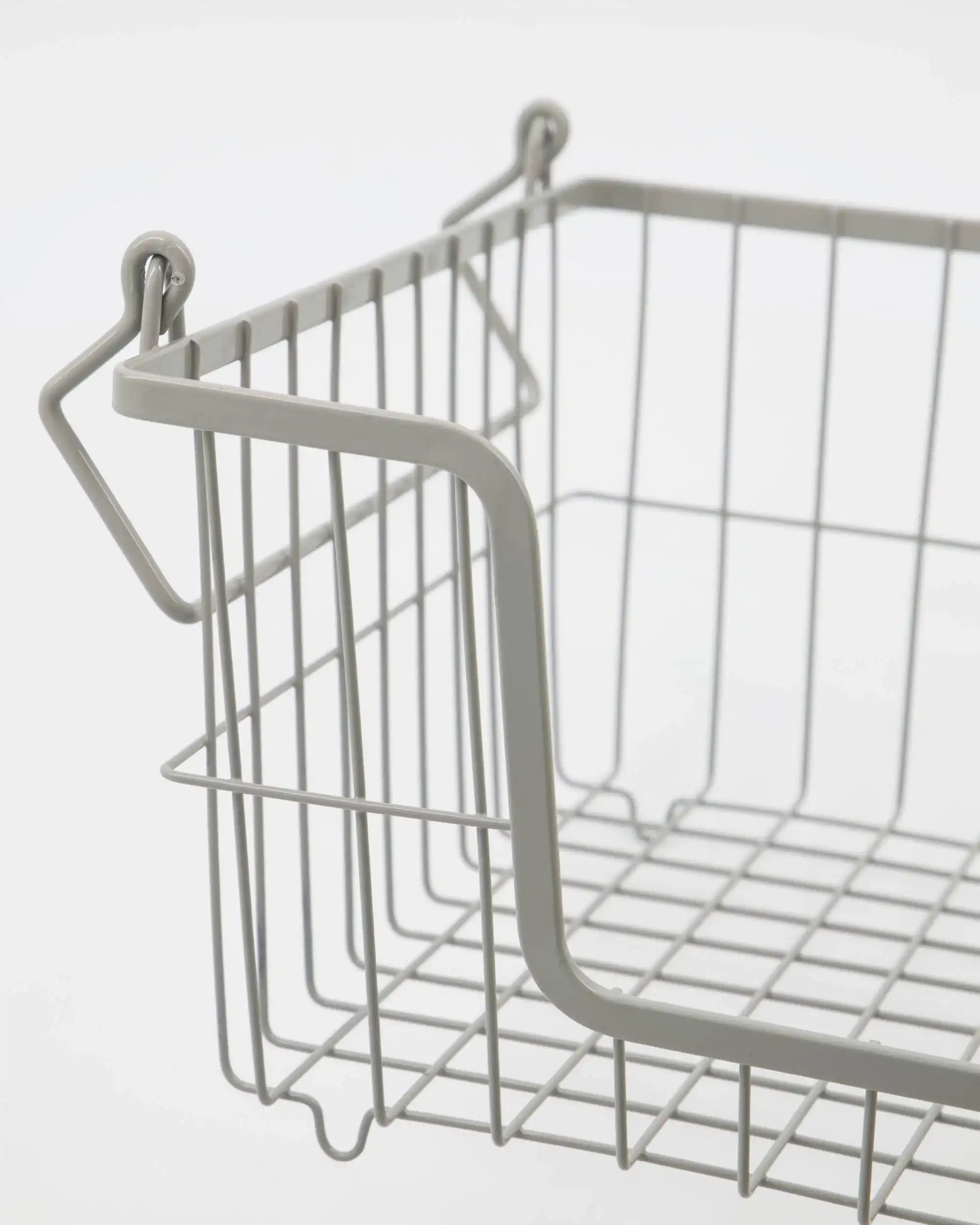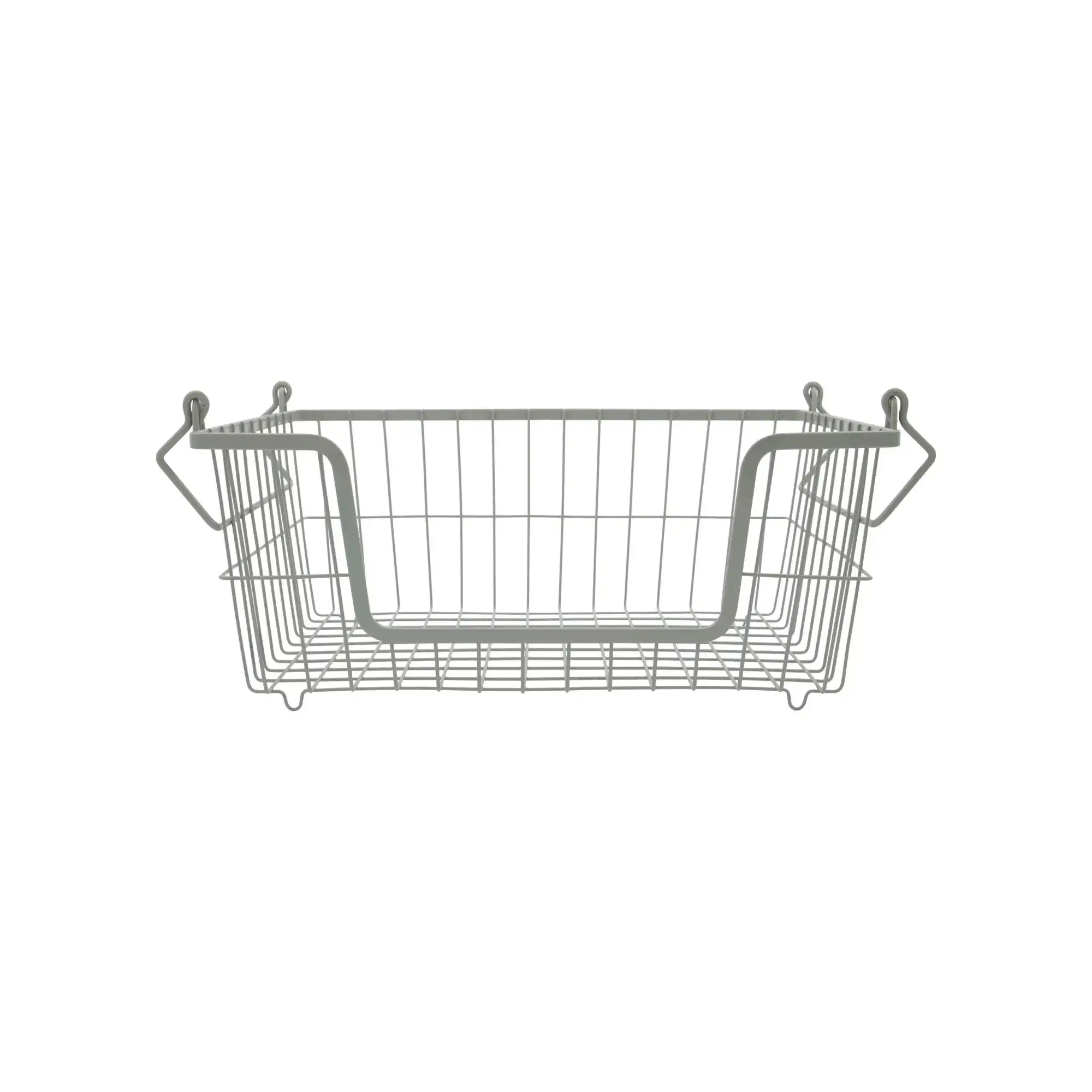 Il cestino è realizzato in metallo robusto e ha una tonalità di grigio senza tempo. Grazie alle dimensioni di 35 cm di lunghezza, 27 cm di larghezza e 15 cm di altezza, offre ampio spazio per oggetti più piccoli, dai prodotti per la cura personale agli utensili da cucina. Ruotando le maniglie verso l'interno, puoi anche impilarlo per un'organizzazione ordinata su più livelli.