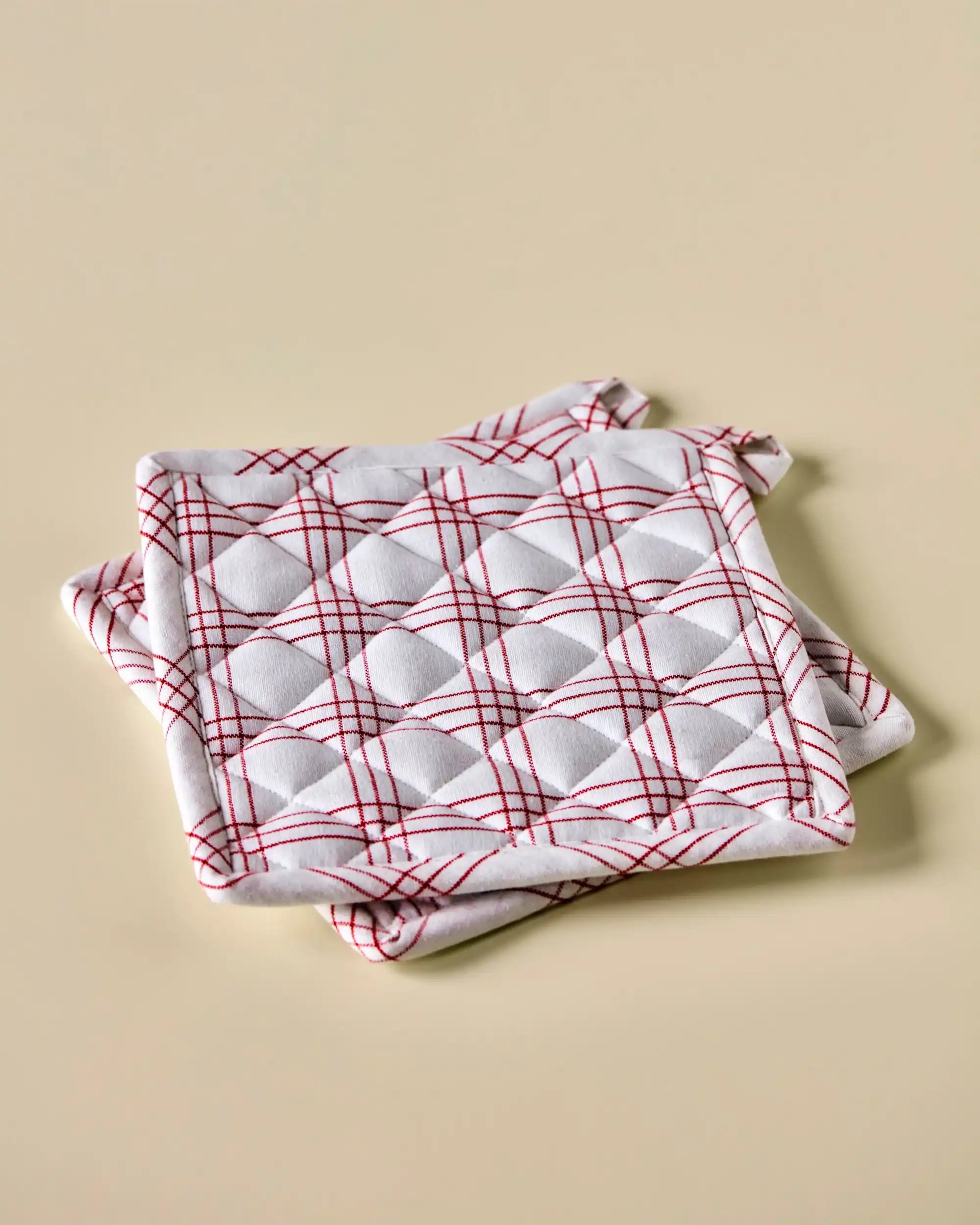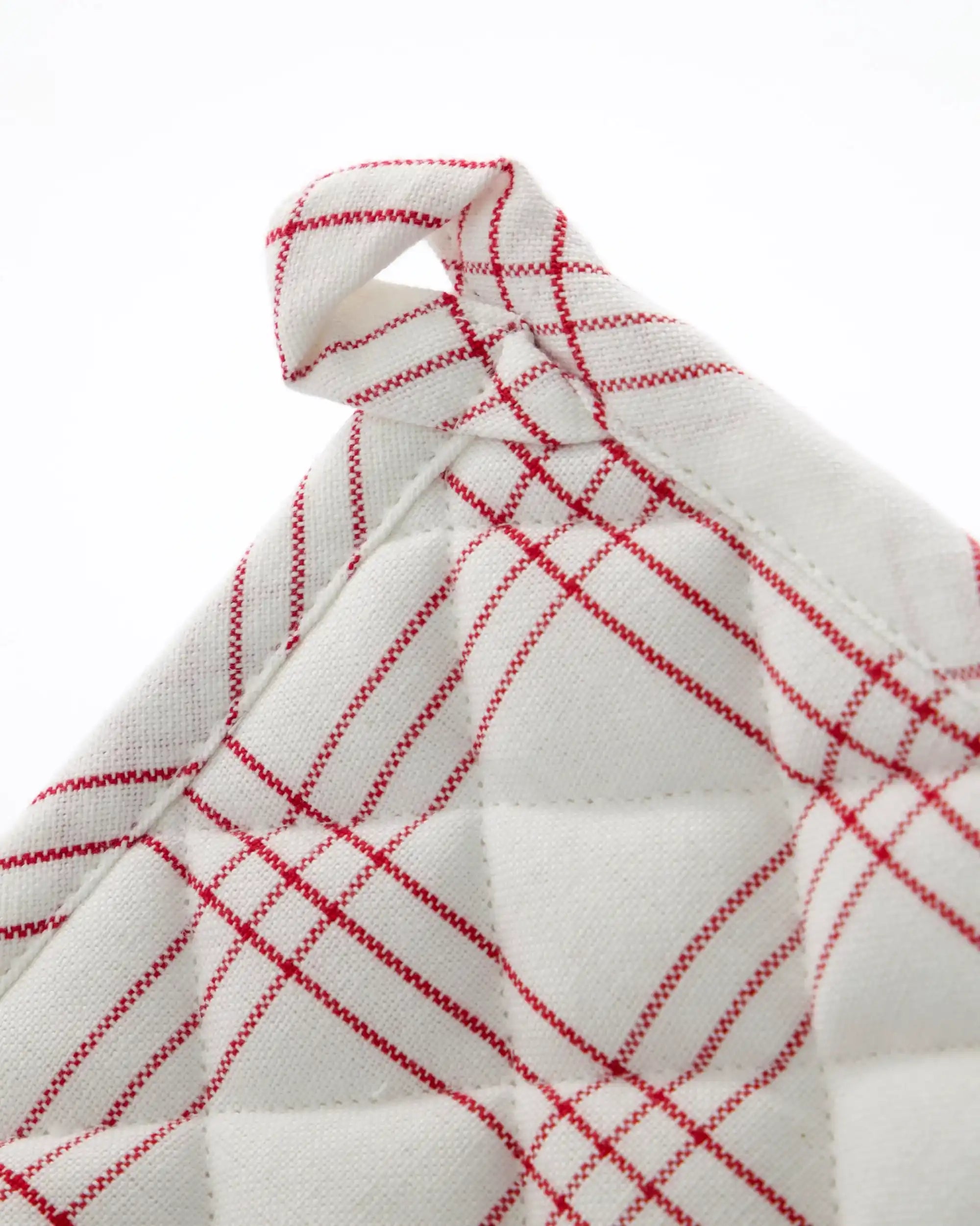 Realizzate in robusto cotone 100% certificato OEKO-TEX®, le presine sono piacevoli al tatto e proteggono efficacemente dal calore. Grazie alle generose dimensioni di 22,5 x 22,5 cm, sono ideali per le attività quotidiane in cucina e rappresentano un bellissimo complemento per la tua collezione di tessili da cucina. La pratica asola permette di appenderle facilmente, rendendole sempre a portata di mano e decorative.