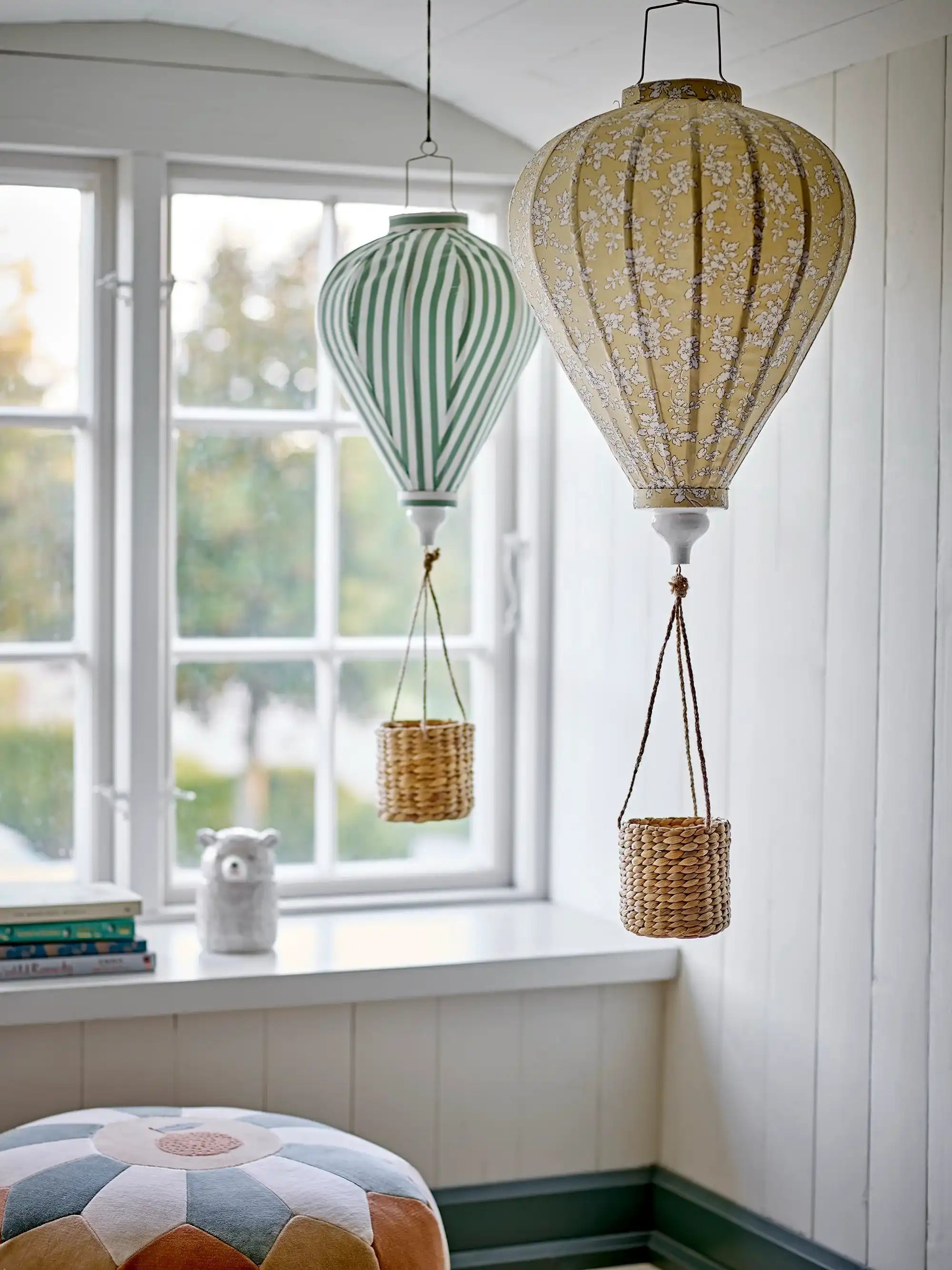 Dettagli & materiale: Il palloncino è realizzato in poliestere con morbide strisce verdi. Il cestino è intrecciato in vimini e dona un aspetto caldo e naturale. Con un diametro di 25 cm, la giostrina è ben visibile senza essere troppo grande. Il palloncino a righe e il cestino creano insieme una combinazione divertente e rilassante. Perfetta per ogni cameretta moderna.