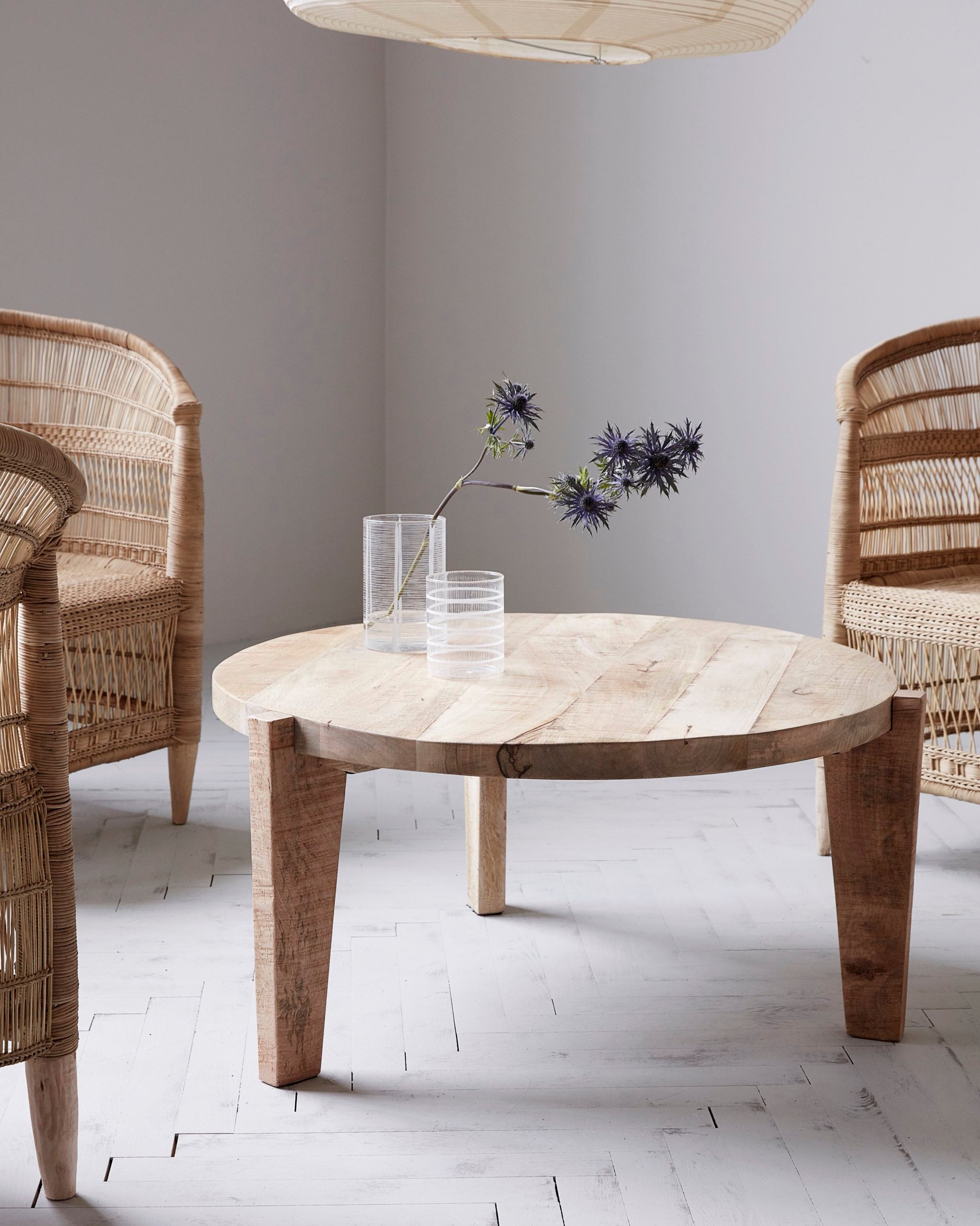 Questo tavolino è realizzato in legno di mango naturale e presenta una calda tonalità che si abbina perfettamente sia a colori neutri che ad accenti più vivaci. Il tavolo è alto 40 cm e ha un generoso diametro di 80 cm. Le gambe larghe e tonde garantiscono stabilità e un aspetto distintivo, senza risultare eccessive.