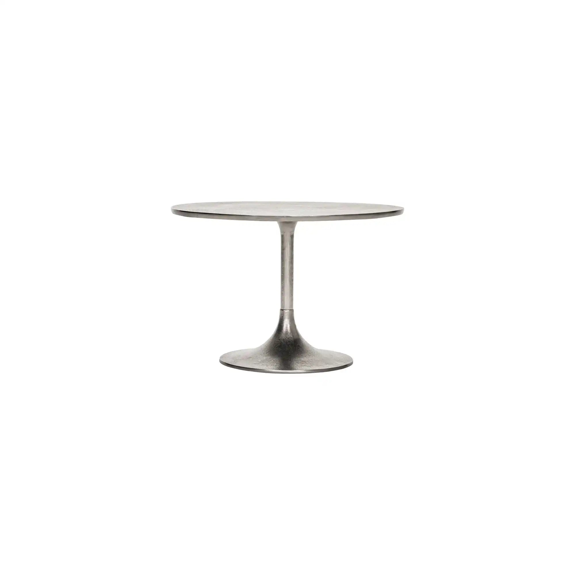 Questo tavolino rotondo è realizzato in solido alluminio e rifinito in una brillante tonalità argento. L’altezza di 40 cm e il diametro di 61 cm lo rendono compatto ma d’impatto. La combinazione del materiale robusto e delle linee pulite dona un look raffinato e contemporaneo.