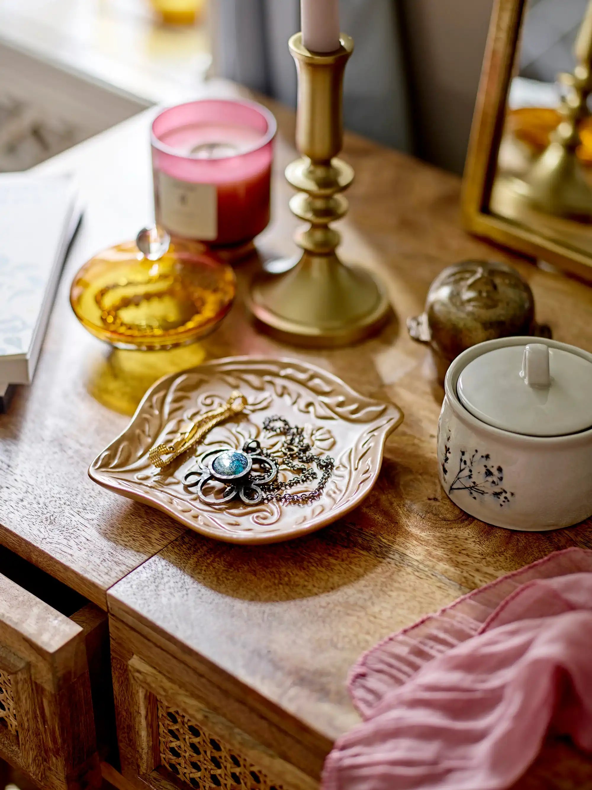 Con le sue dimensioni compatte (18 x 16 cm), la ciotola è ideale per conservare con stile piccoli gioielli, chiavi o altri accessori. Mettila sul tuo comodino, in bagno o aggiungi un tocco personale alla tua credenza. L'artigianalità rende ogni ciotola unica nel motivo e nella realizzazione.
