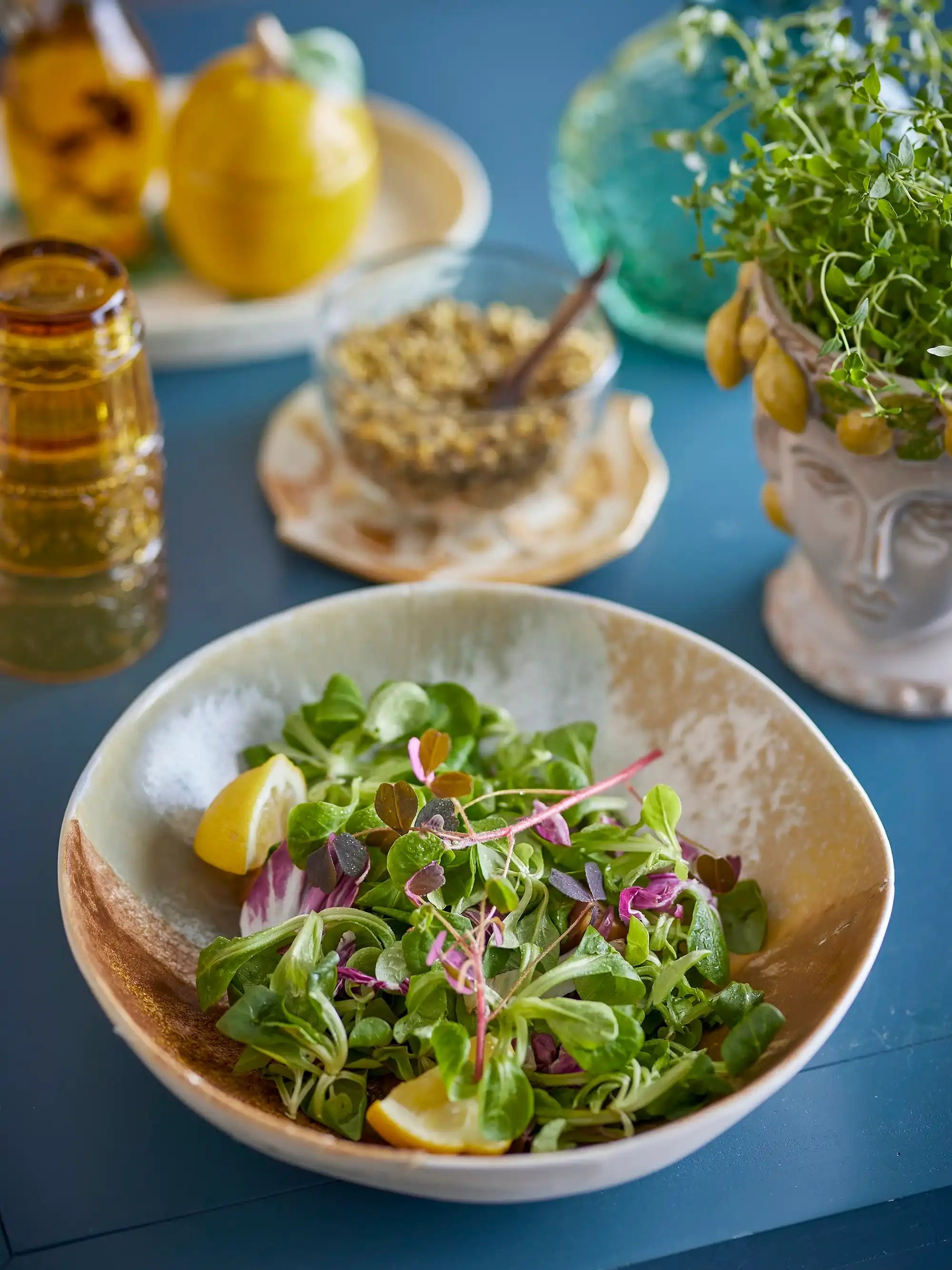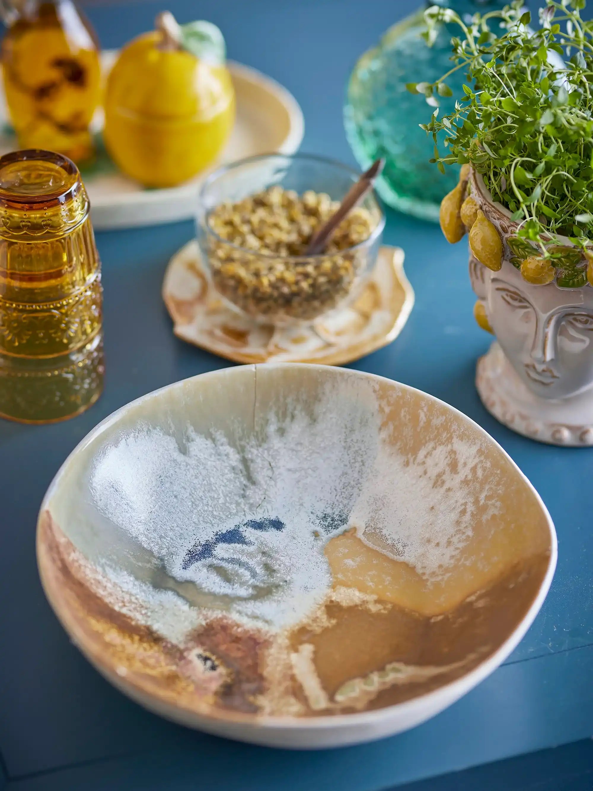 Perché desideri avere la tua ciotola di Bloomingville: La ciotola Lacey aggiunge subito profondità e calore alla tua tavola. La smaltatura reattiva in tonalità ricche e calde fa sì che il giallo giochi delicatamente con la luce, rendendo ogni cena un po’ più speciale. La forma ampia e bassa presenta i piatti in modo invitante e rende la ciotola perfetta sia come piatto da portata che come centrotavola decorativo con frutta o rami. Inoltre, ogni Lacey è unica, donando alla tua mise en place un tocco personale e caratteristico.