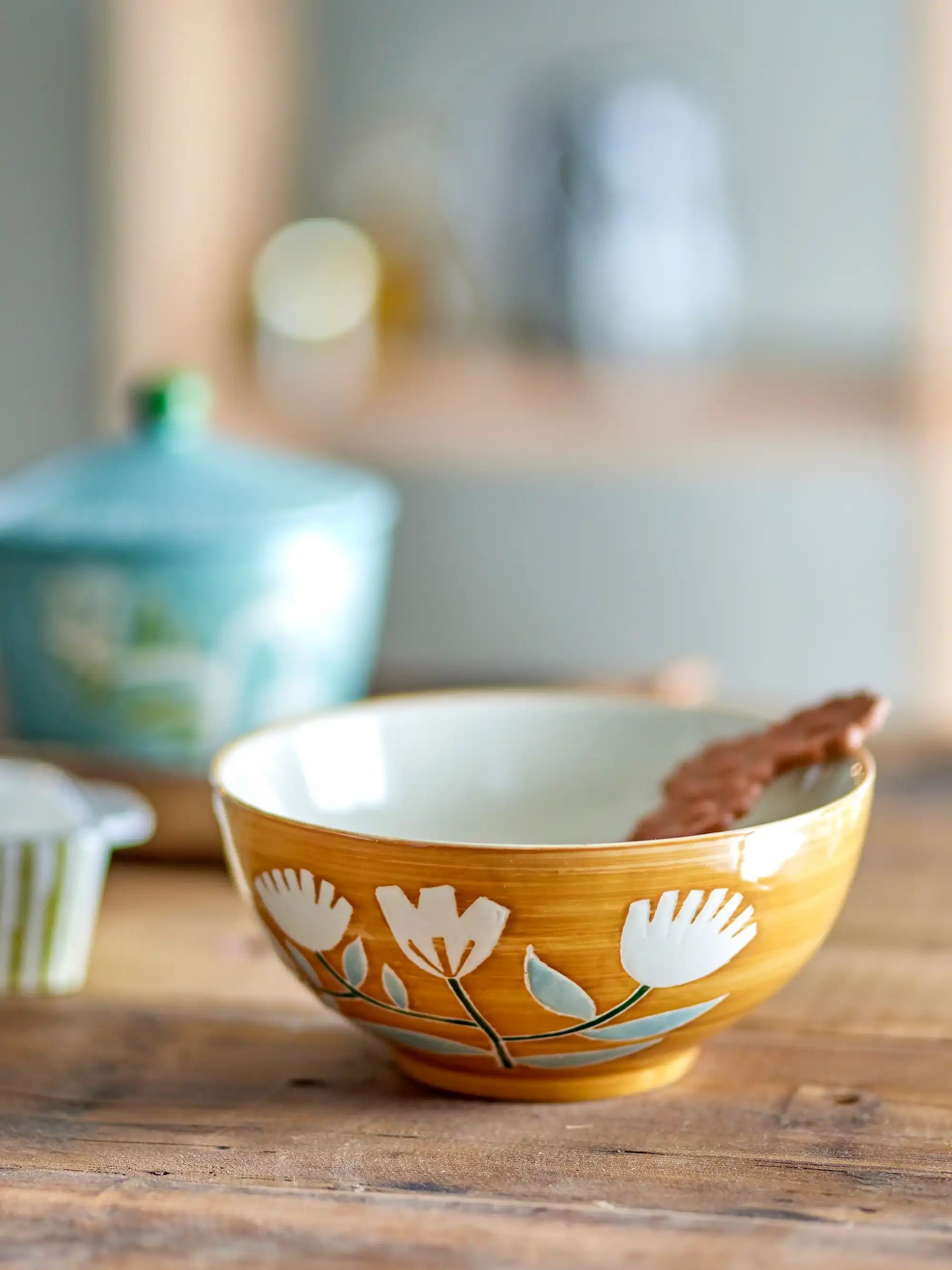 Perché desideri avere la tua ciotola di Bloomingville: Questa ciotola arancione Tangier di Bloomingville porta subito allegria in tavola. Ogni pezzo è decorato a mano con fiori giocosi, così porti a casa un oggetto autentico con un tocco retrò sottile. Usala come accento colorato a colazione, come ciotola da portata durante una cena con amici o semplicemente lasciala brillare sul piano della cucina. Grazie al motivo caratteristico, aggiungi personalità al tuo stile in un attimo.
